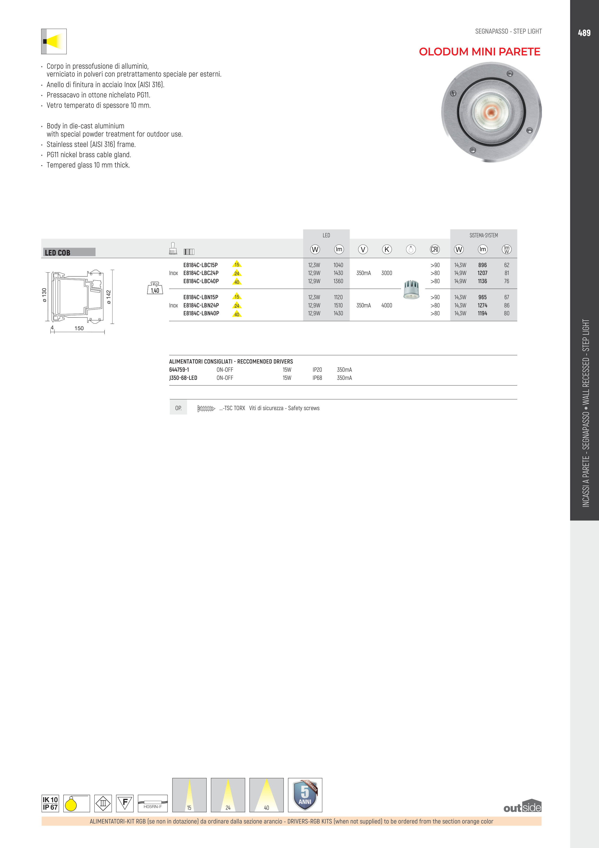INCASSI A PARETE - SEGNAPASSO • WALL RECESSED - STEP LIGHT