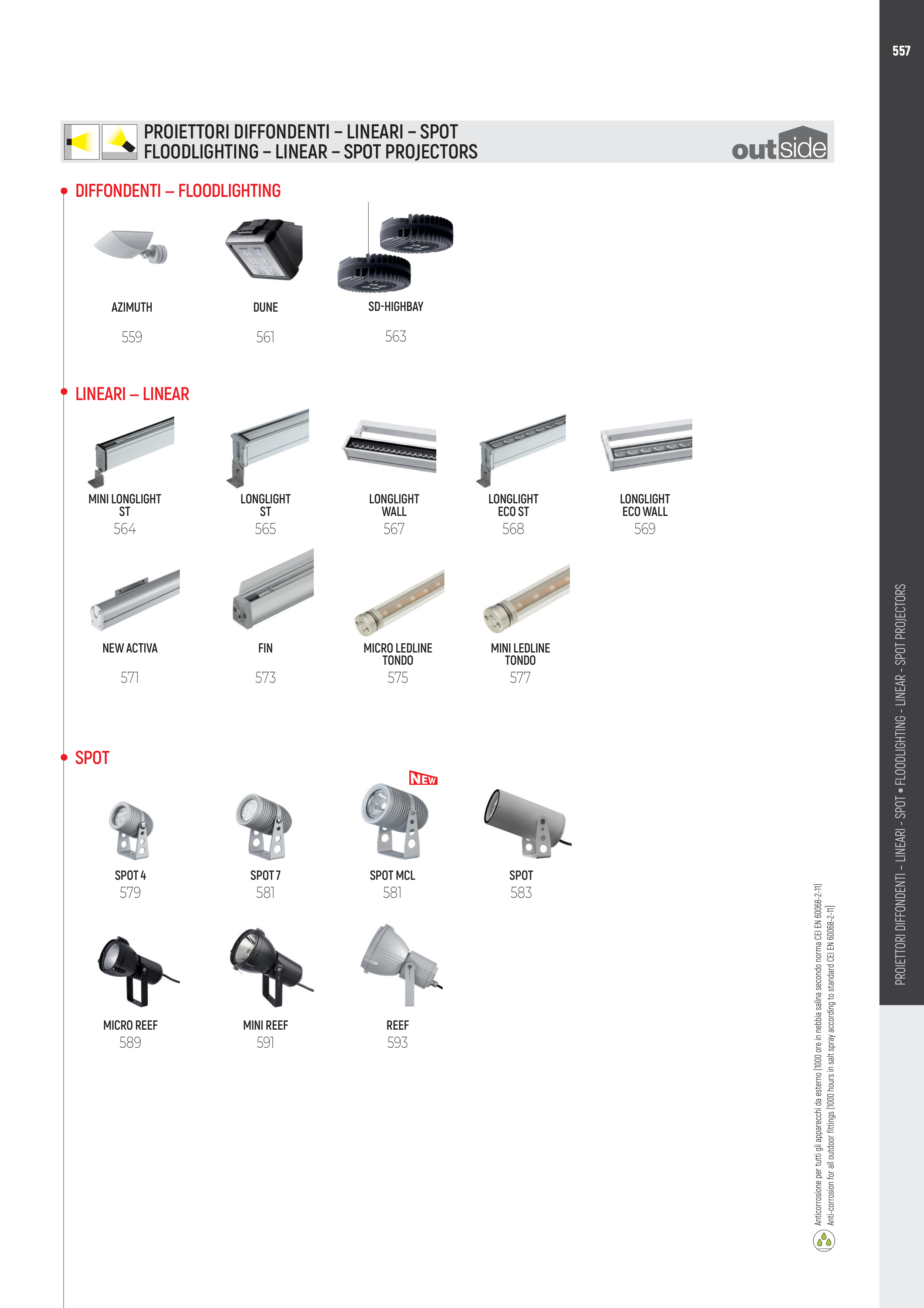 Anticorrosione per tutti gli apparecchi da esterno (1000 ore in nebbia salina secondo norma CEI EN 60068-2-11)