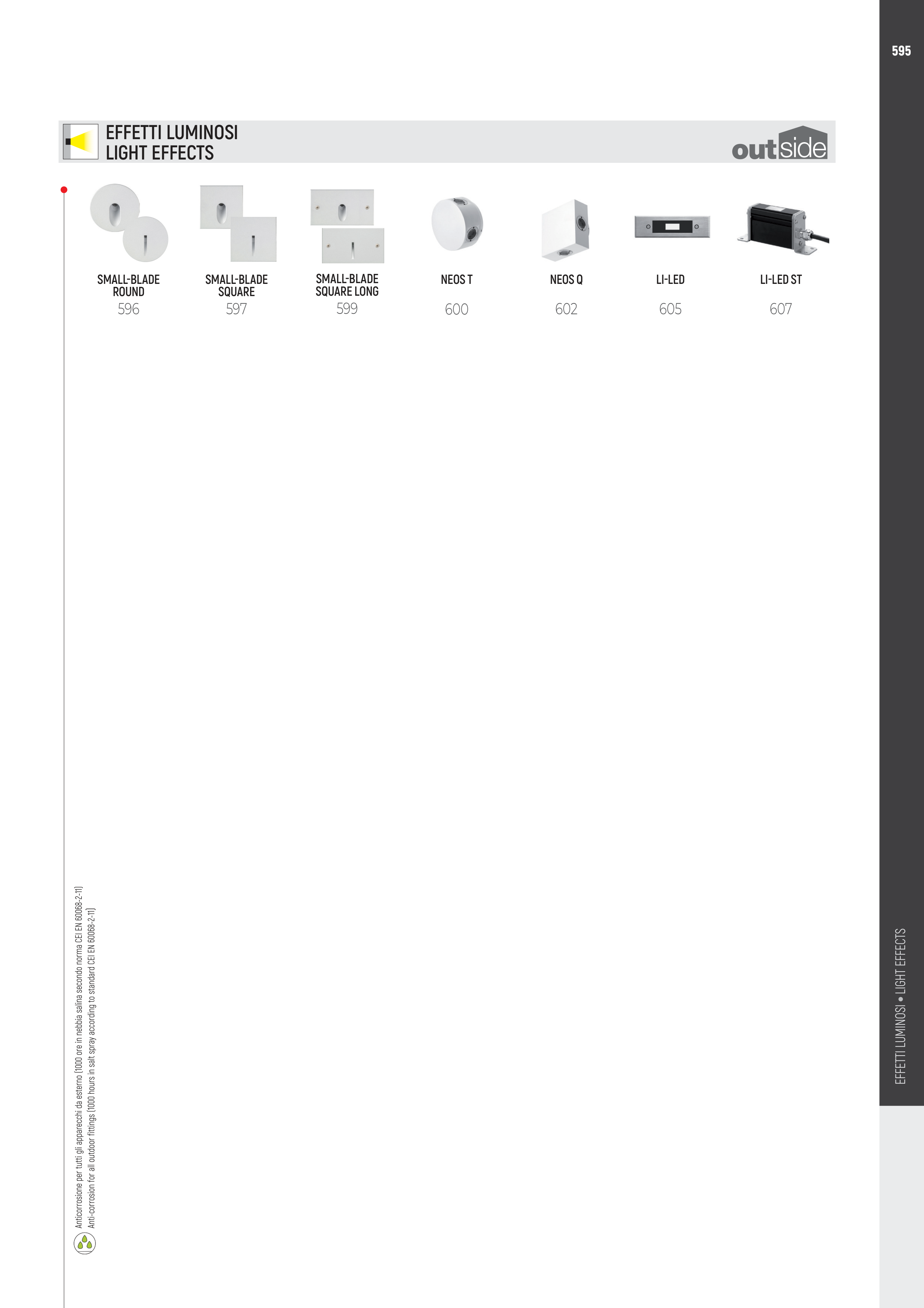 Anticorrosione per tutti gli apparecchi da esterno (1000 ore in nebbia salina secondo norma CEI EN 60068-2-11)