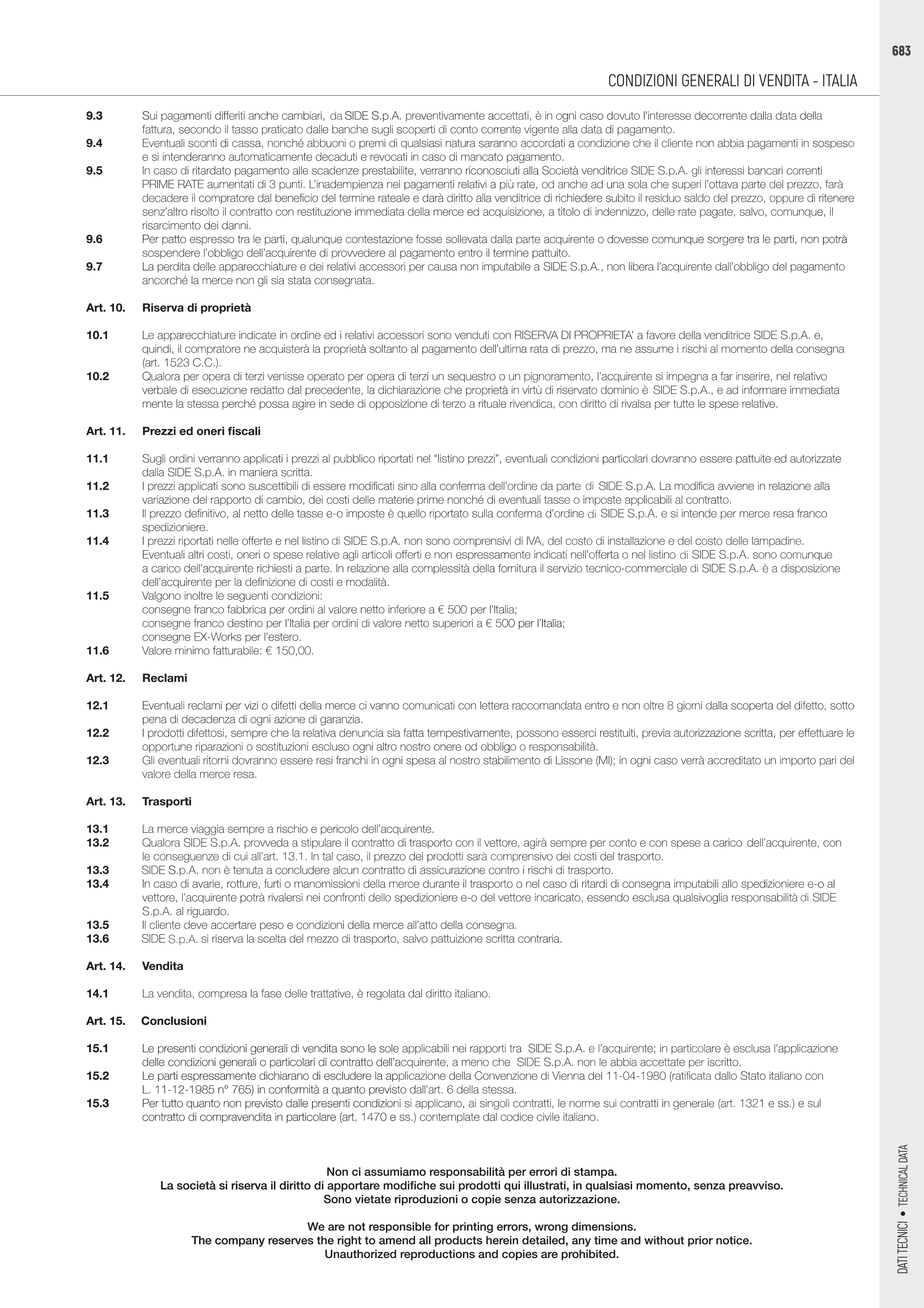 CONDIZIONI GENERALI DI VENDITA - ITALIA