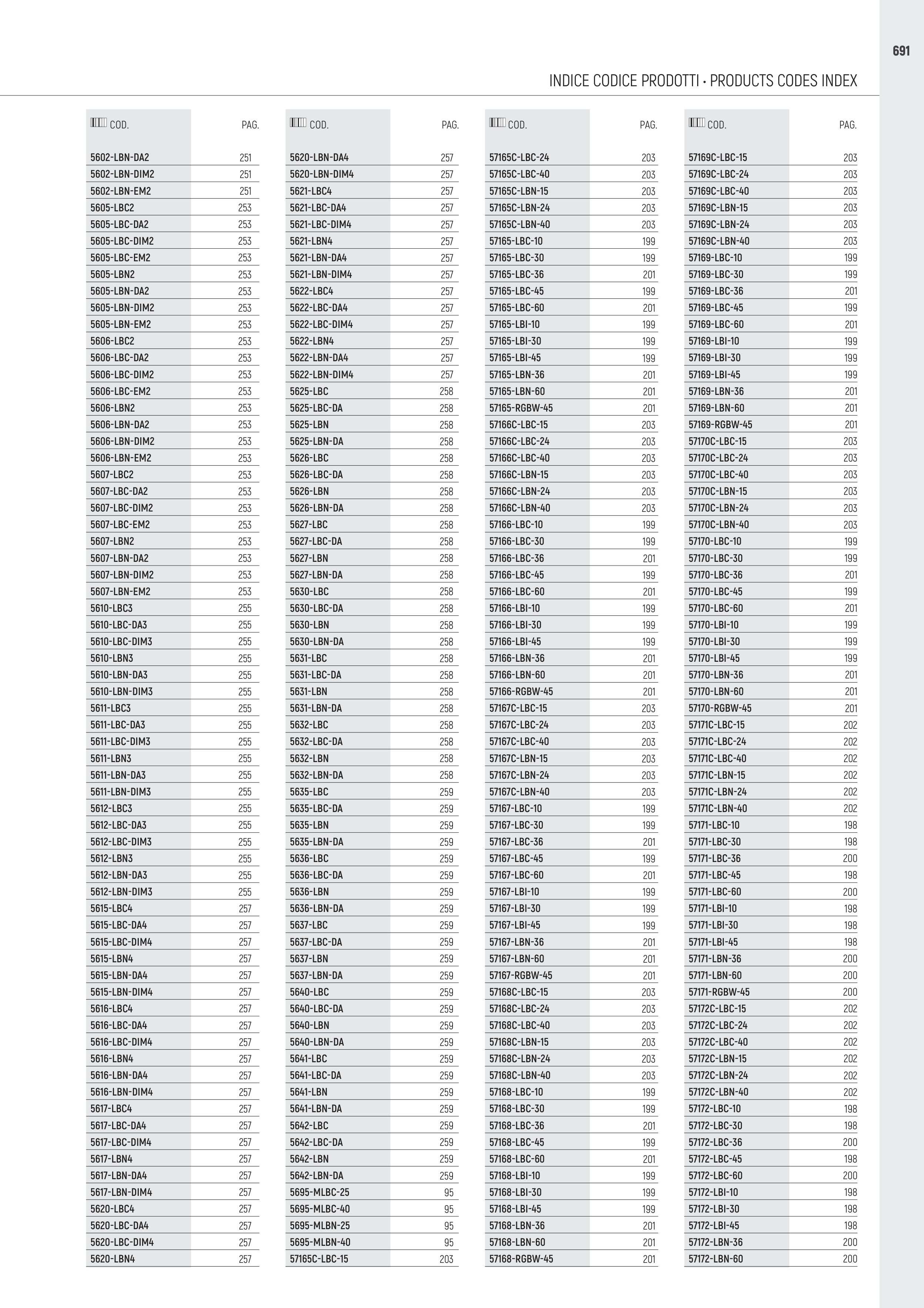INDICE CODICE PRODOTTI • PRODUCTS CODES INDEX