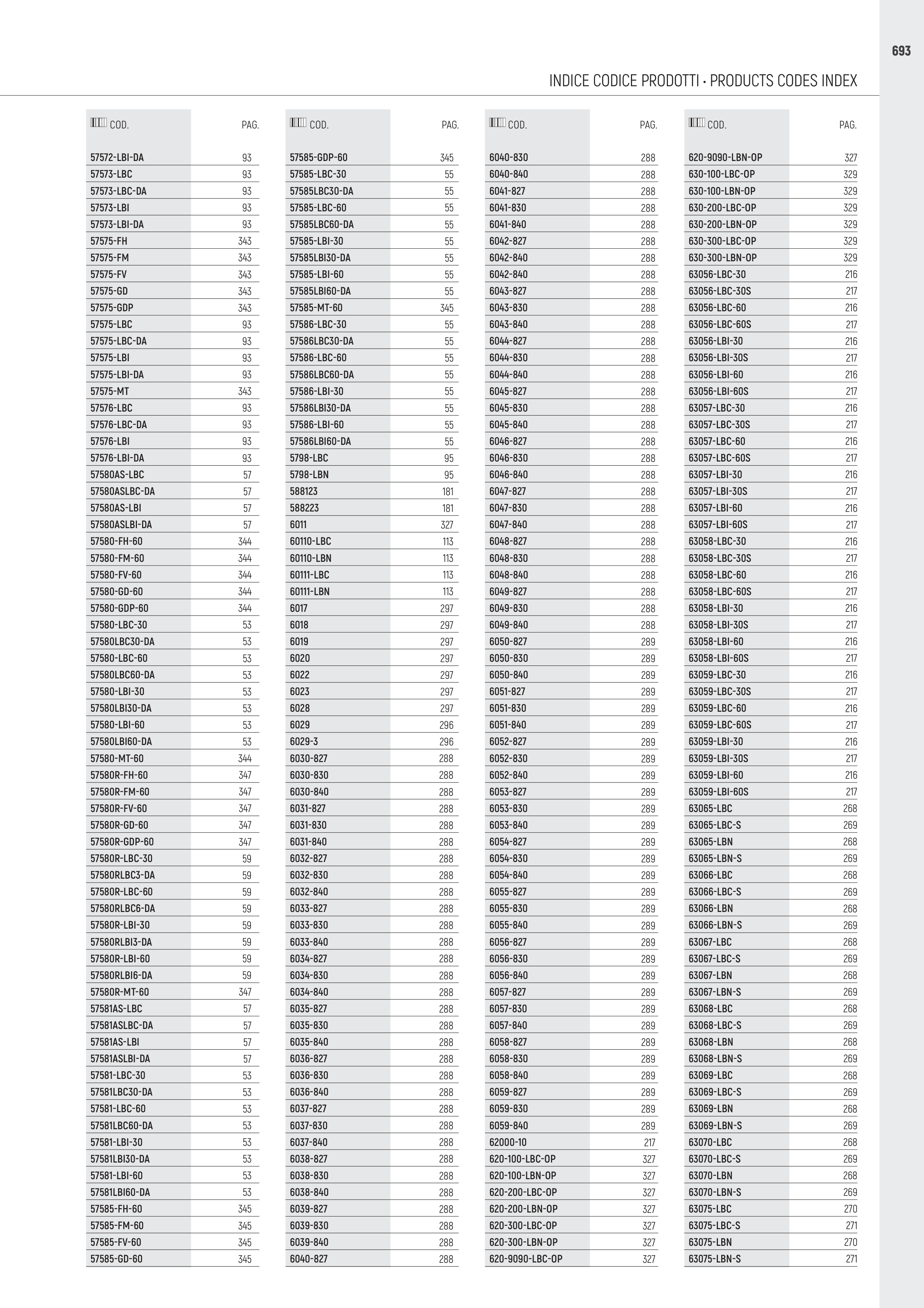 INDICE CODICE PRODOTTI • PRODUCTS CODES INDEX