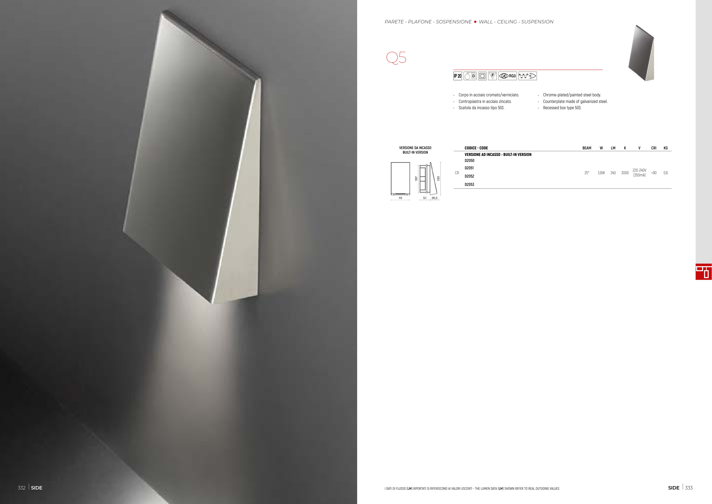 I DATI DI FLUSSO (LM) RIPORTATI SI RIFERISCONO AI VALORI USCENTI - THE LUMEN DATA (LM) SHOWN REFER TO REAL OUTGOING VALUES