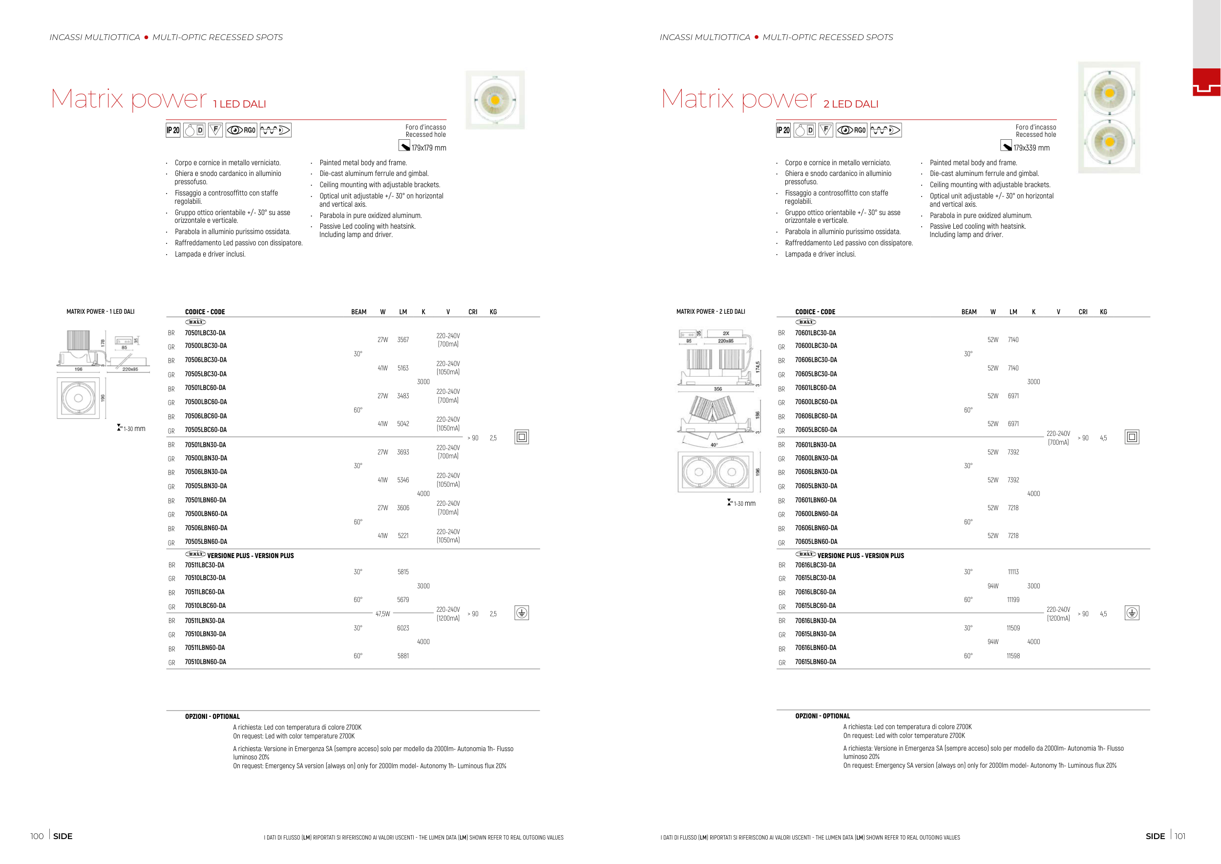 I DATI DI FLUSSO (LM) RIPORTATI SI RIFERISCONO AI VALORI USCENTI - THE LUMEN DATA (LM) SHOWN REFER TO REAL OUTGOING VALUES