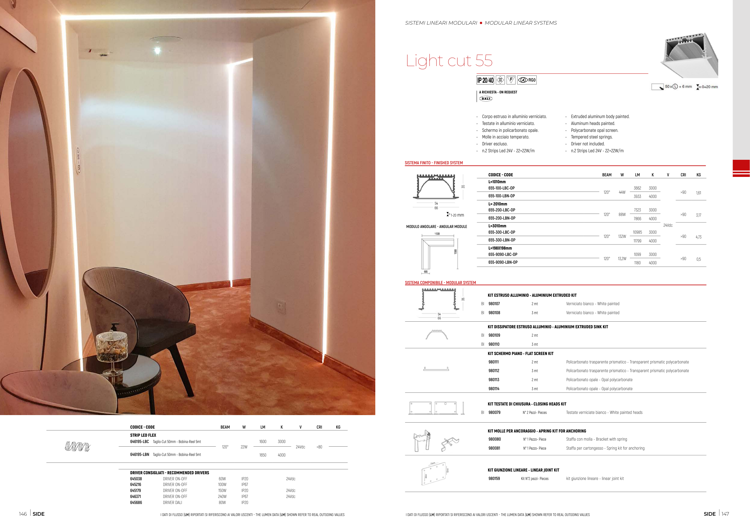 I DATI DI FLUSSO (LM) RIPORTATI SI RIFERISCONO AI VALORI USCENTI - THE LUMEN DATA (LM) SHOWN REFER TO REAL OUTGOING VALUES