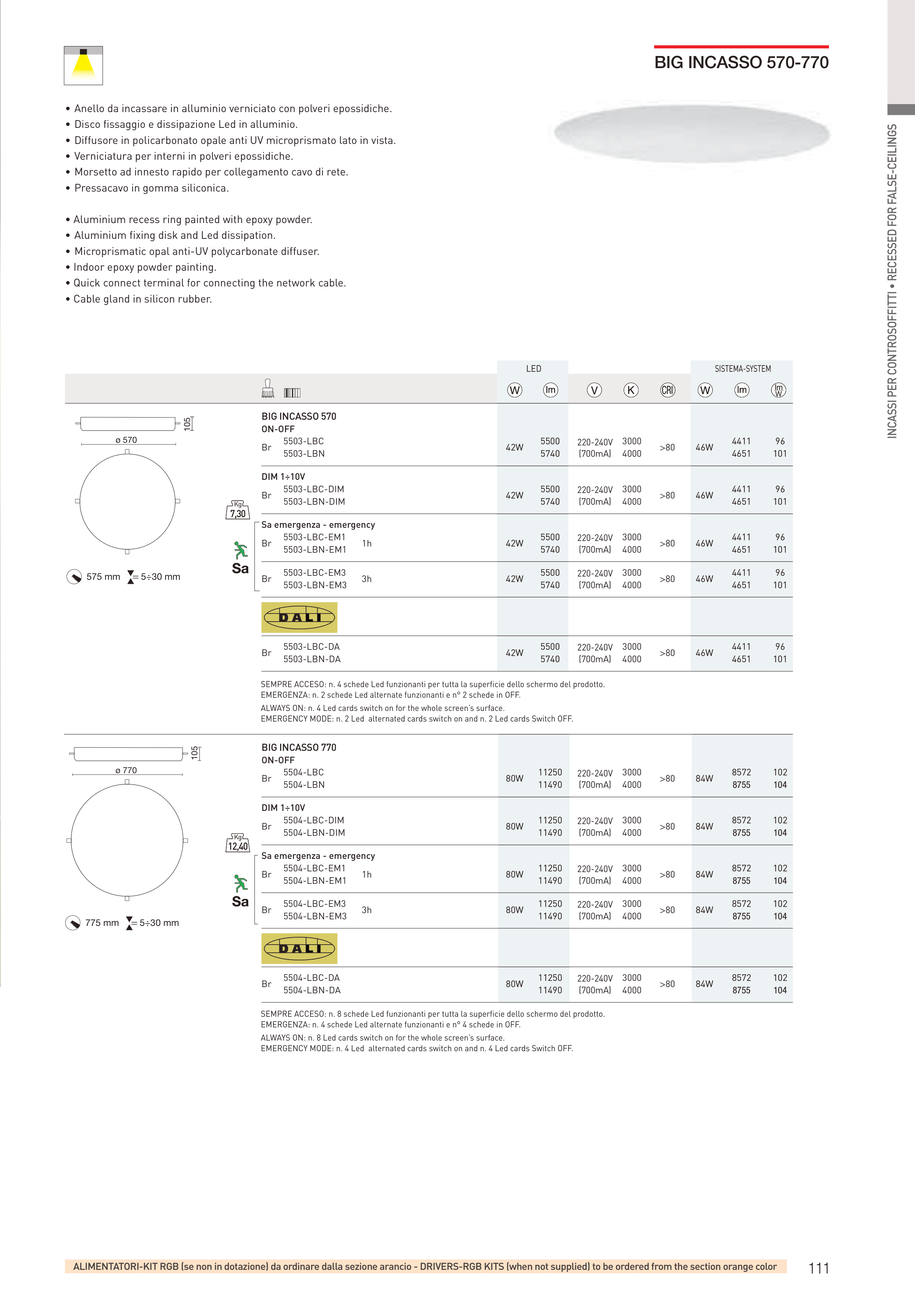 ALIMENTATORI-KIT RGB (se non in dotazione) da ordinare dalla sezione arancio - DRIVERS-RGB KITS (when not supplied) to be ordered from the section orange color
