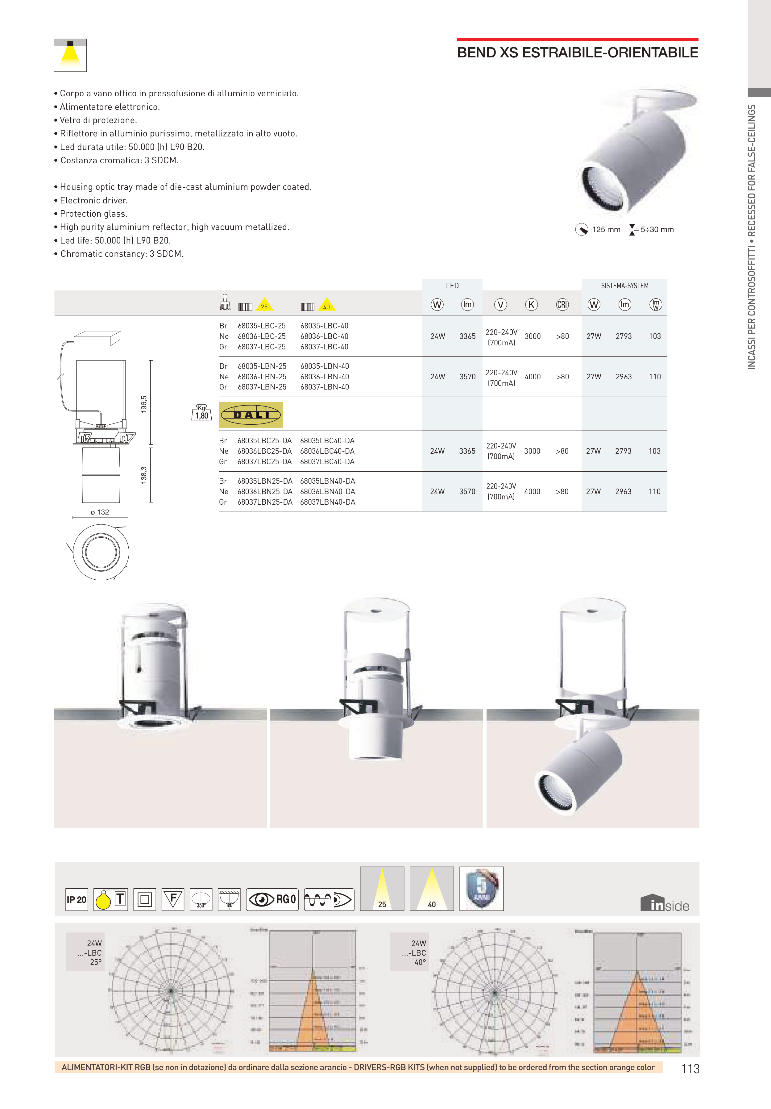 INCASSI PER CONTROSOFFITTI • RECESSED FOR FALSE-CEILINGS