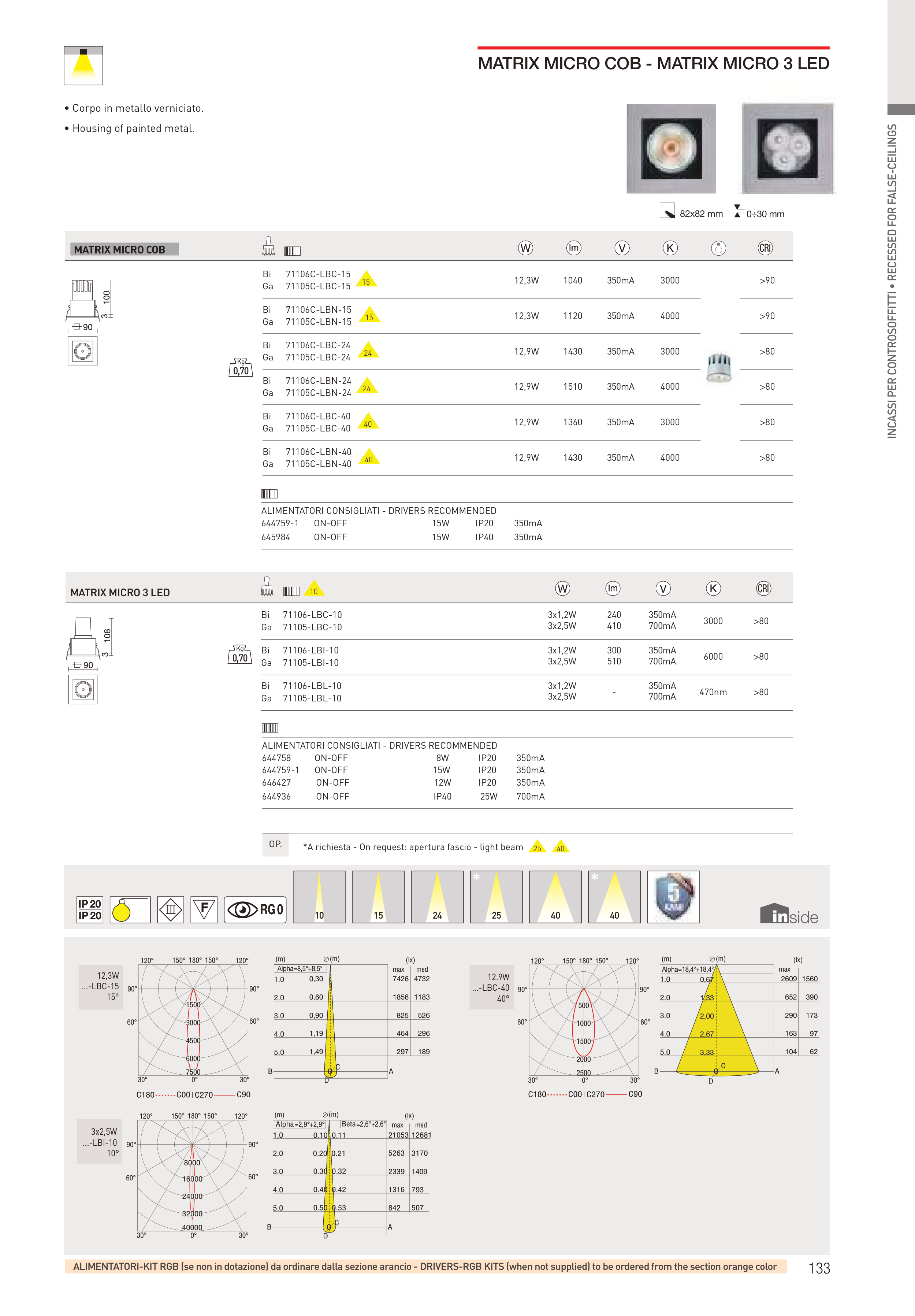 INCASSI PER CONTROSOFFITTI • RECESSED FOR FALSE-CEILINGS