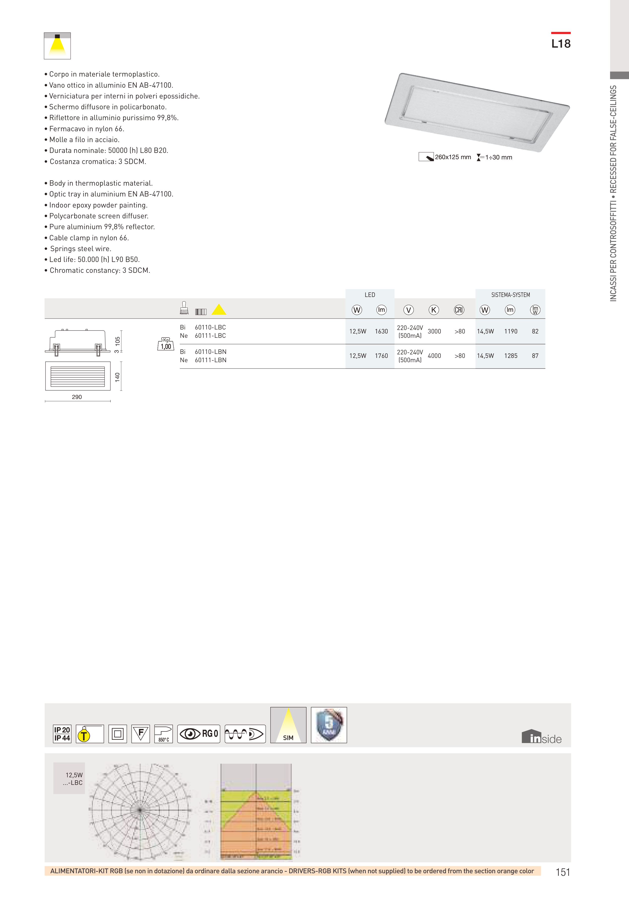 INCASSI PER CONTROSOFFITTI • RECESSED FOR FALSE-CEILINGS