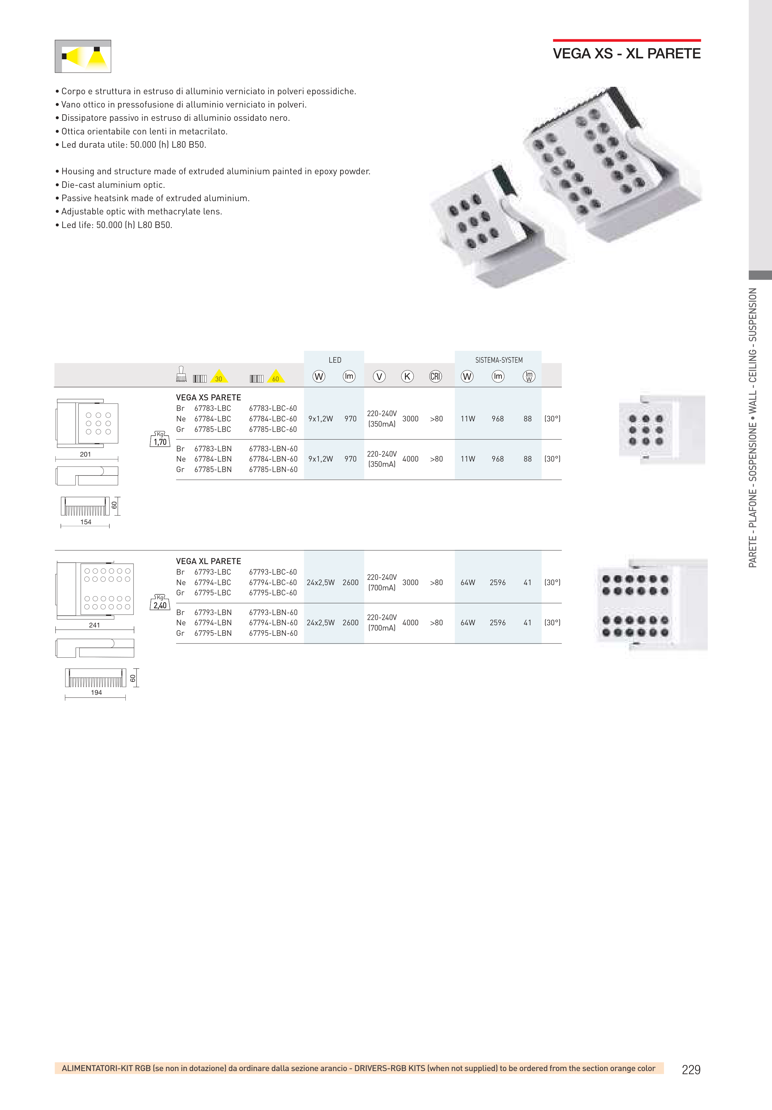 ALIMENTATORI-KIT RGB (se non in dotazione) da ordinare dalla sezione arancio - DRIVERS-RGB KITS (when not supplied) to be ordered from the section orange color