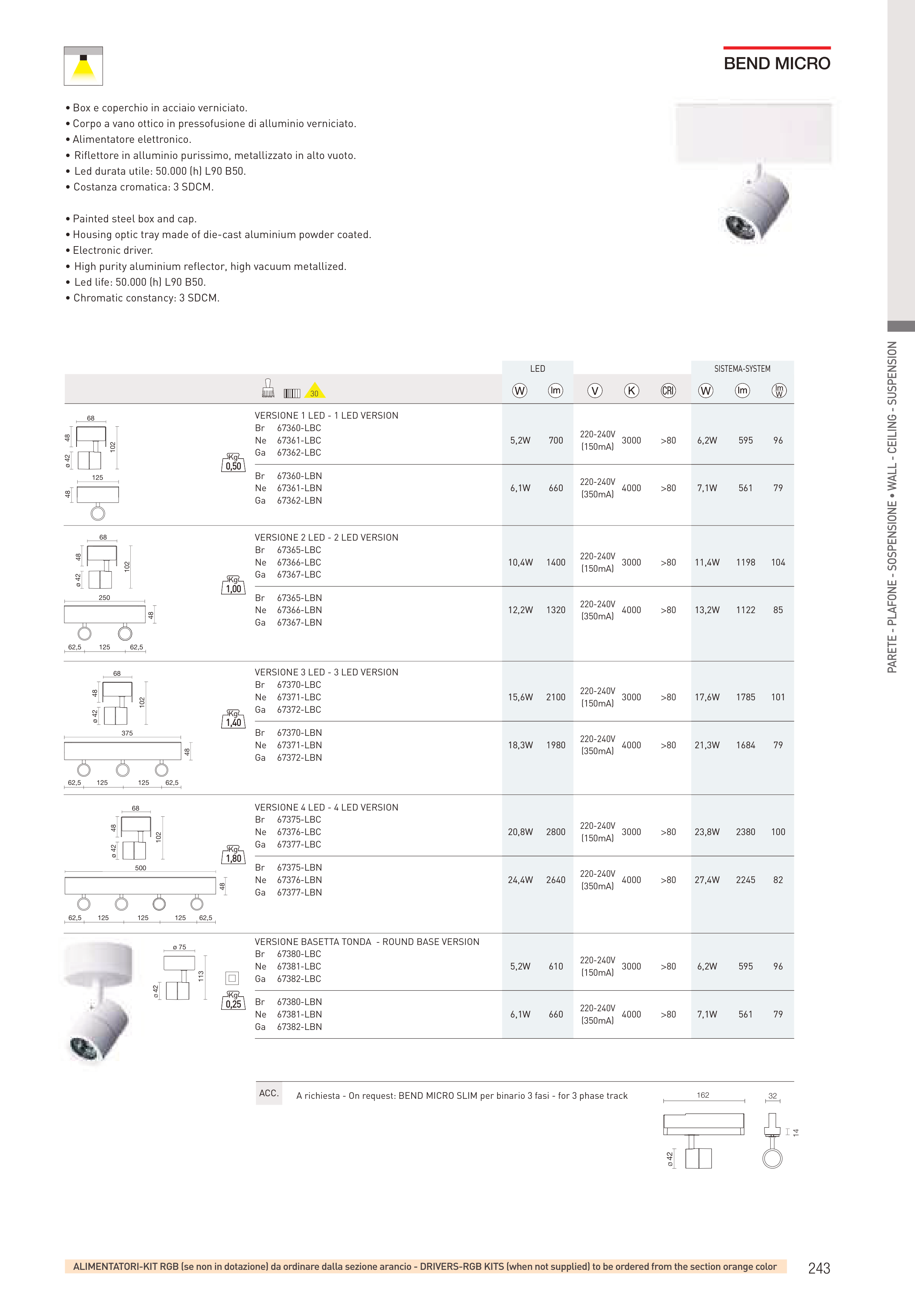 A richiesta - On request: BEND MICRO SLIM per binario 3 fasi - for 3 phase track