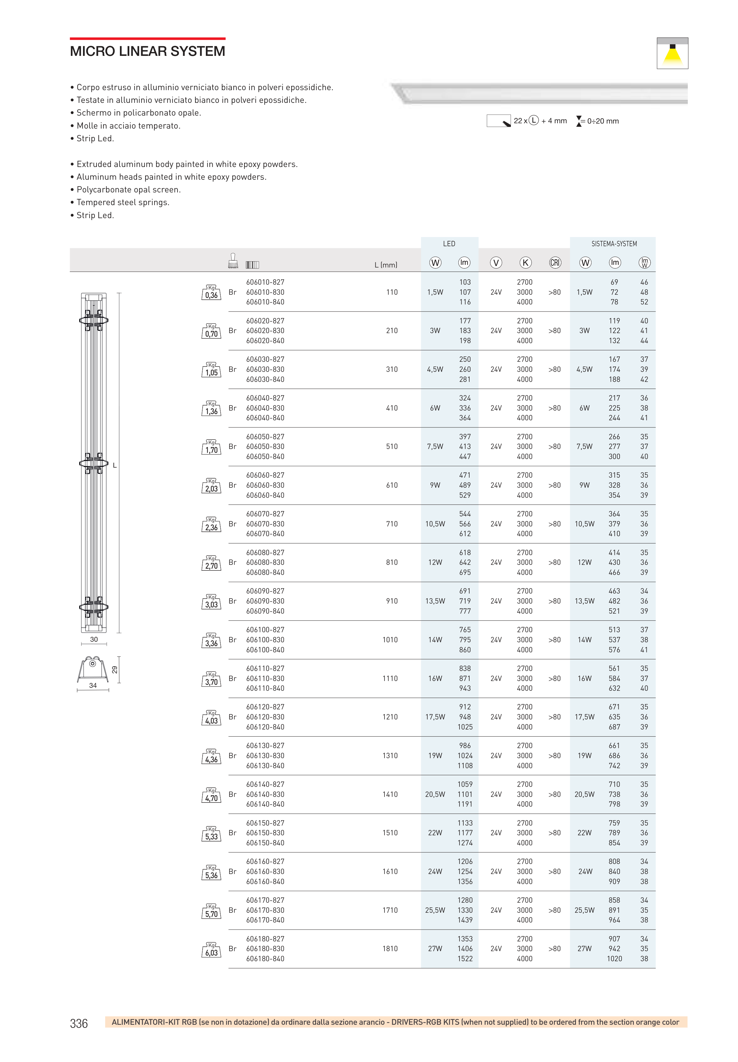 ALIMENTATORI-KIT RGB (se non in dotazione) da ordinare dalla sezione arancio - DRIVERS-RGB KITS (when not supplied) to be ordered from the section orange color