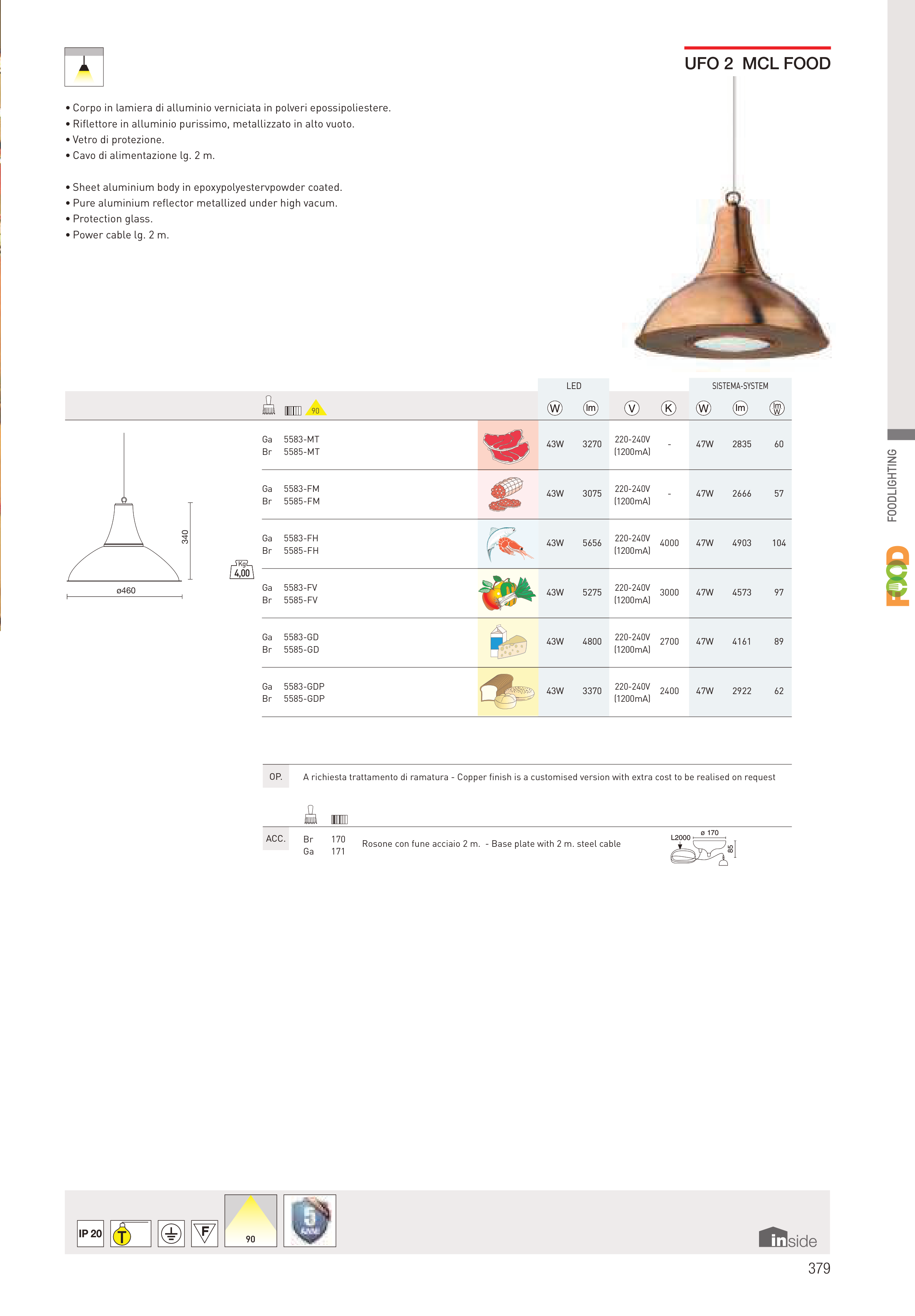• Sheet aluminium body in epoxypolyestervpowder coated.