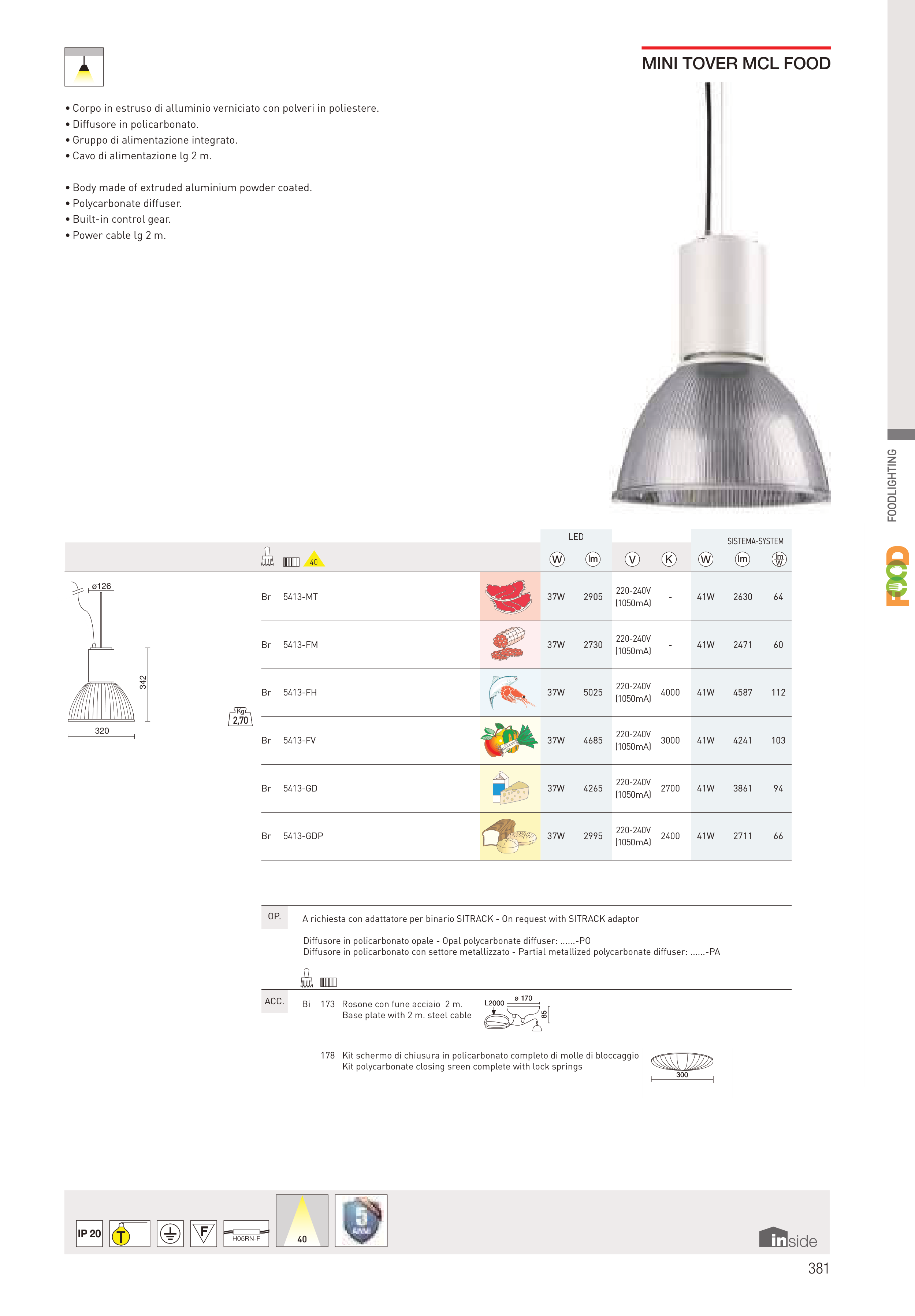 • Polycarbonate diffuser.