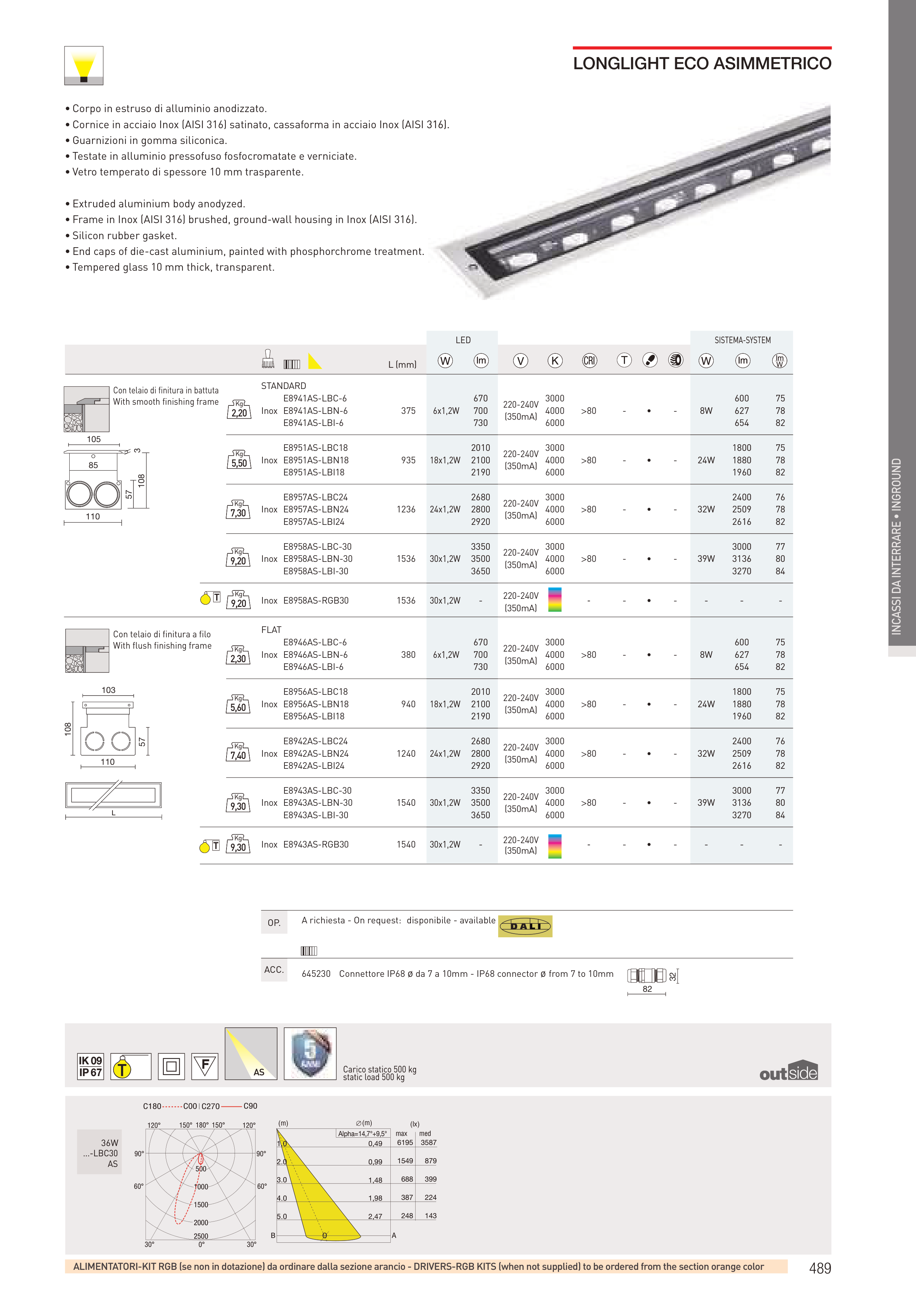 • Frame in Inox (AISI 316) brushed, ground-wall housing in Inox (AISI 316).