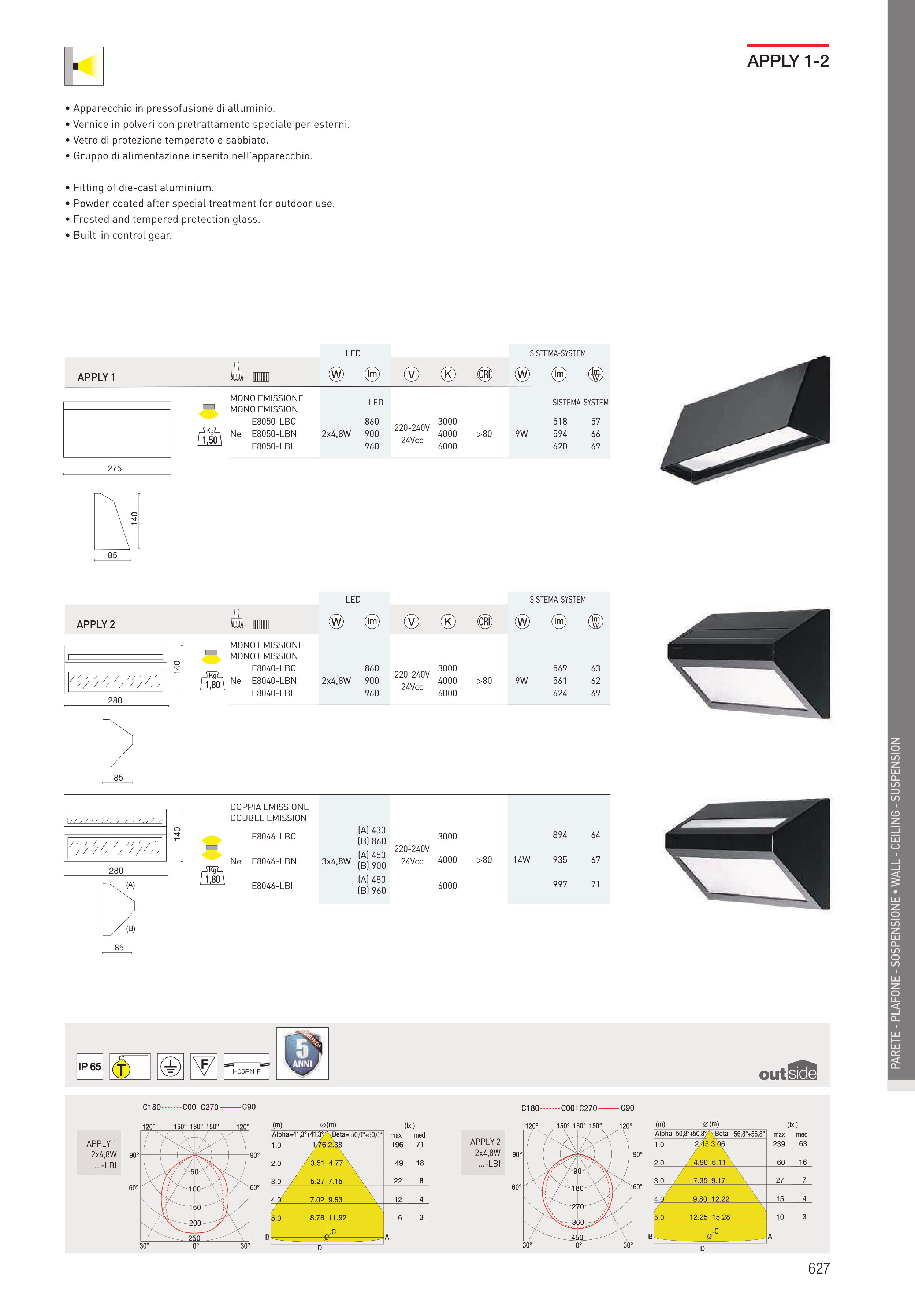 • Apparecchio in pressofusione di alluminio.