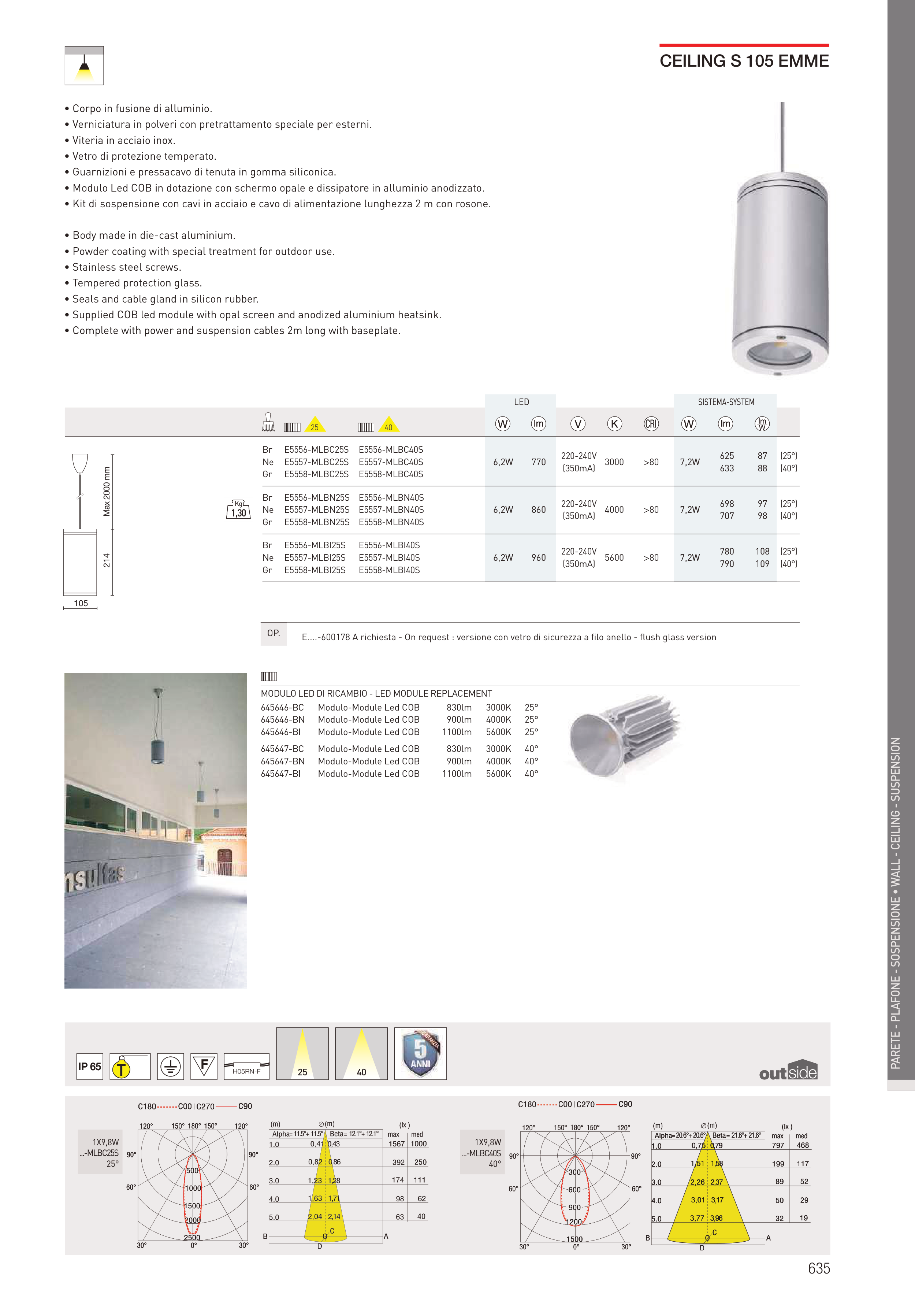• Supplied COB led module with opal screen and anodized aluminium heatsink.