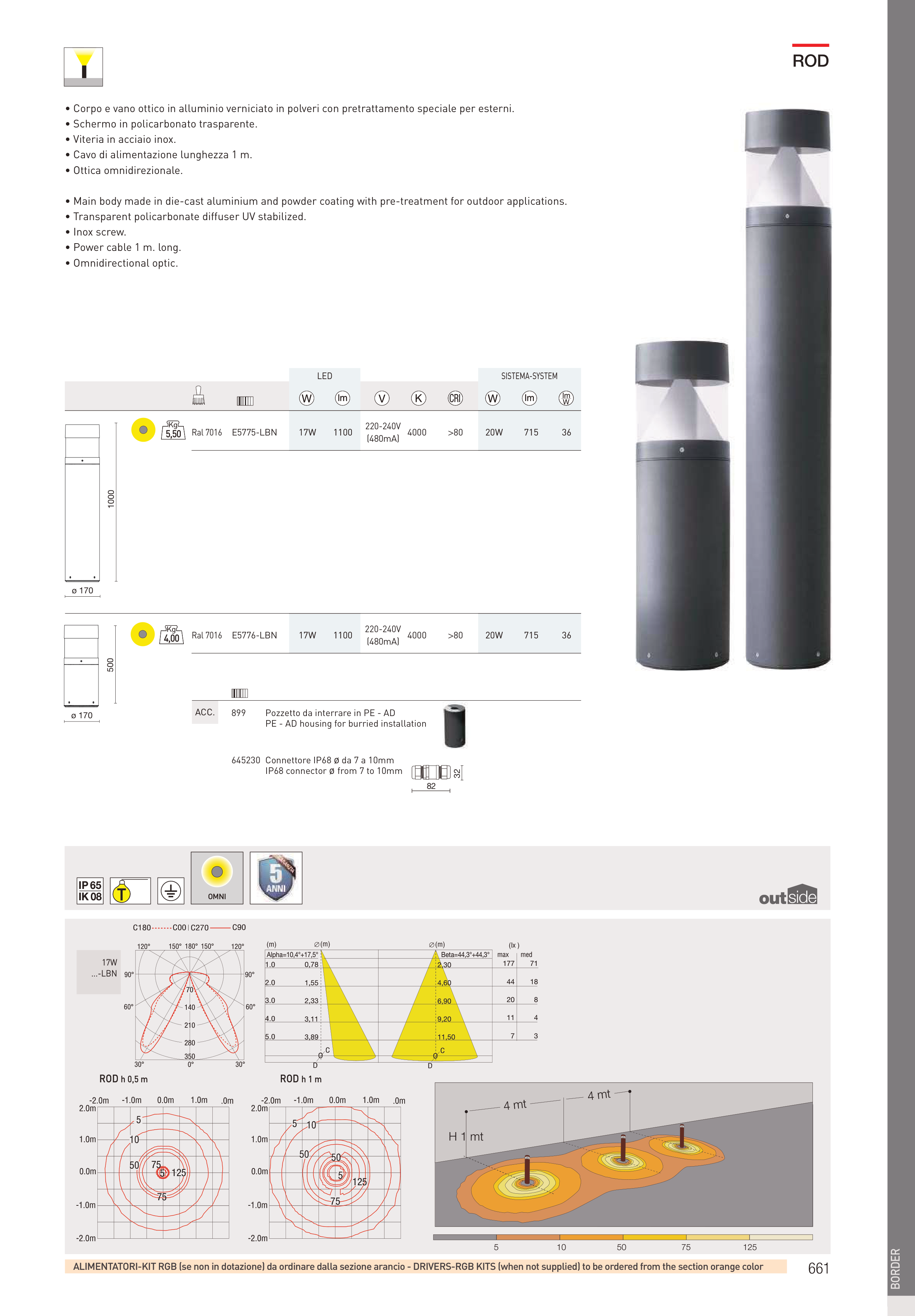 • Main body made in die-cast aluminium and powder coating with pre-treatment for outdoor applications.
