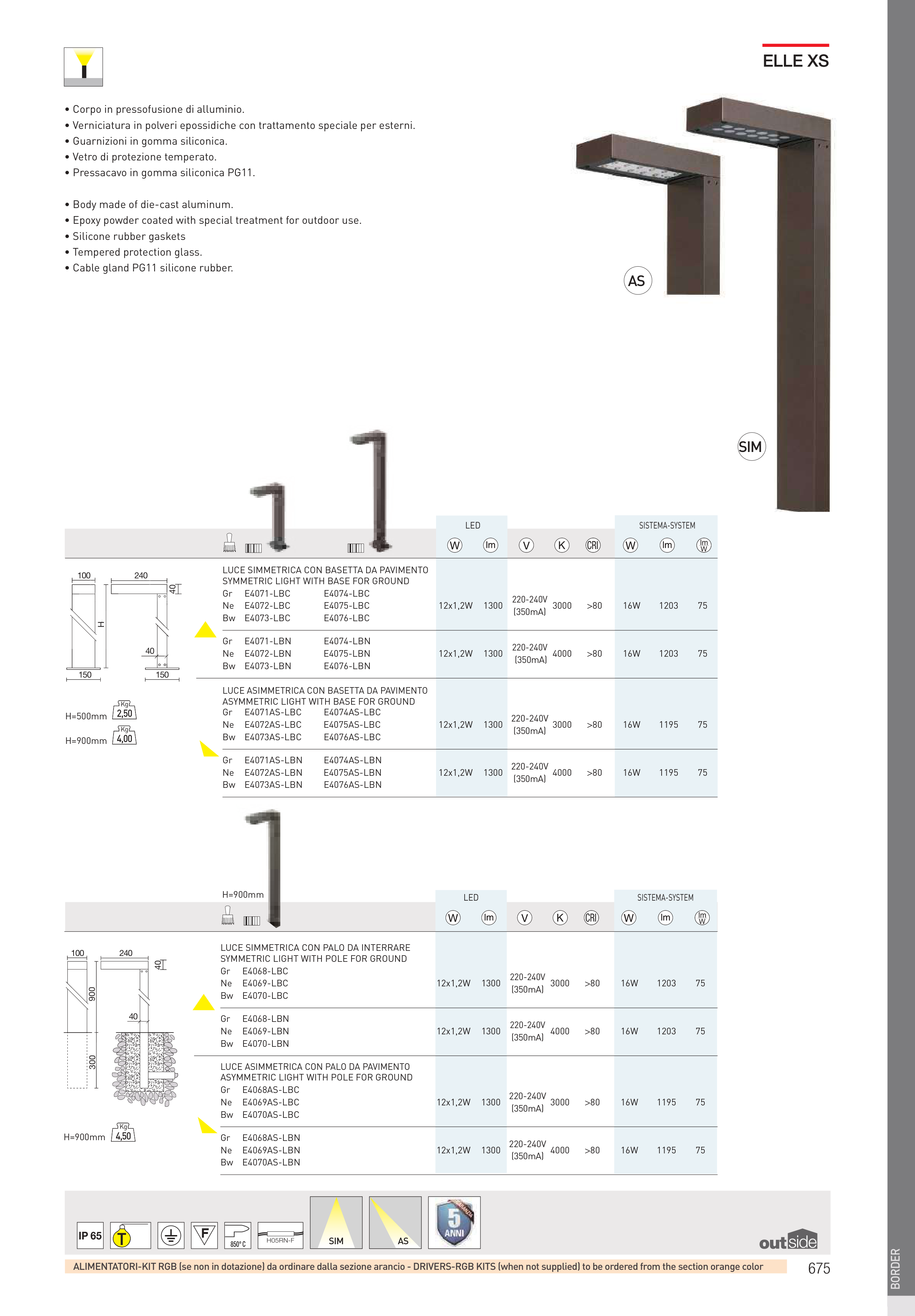 SYMMETRIC LIGHT WITH BASE FOR GROUND