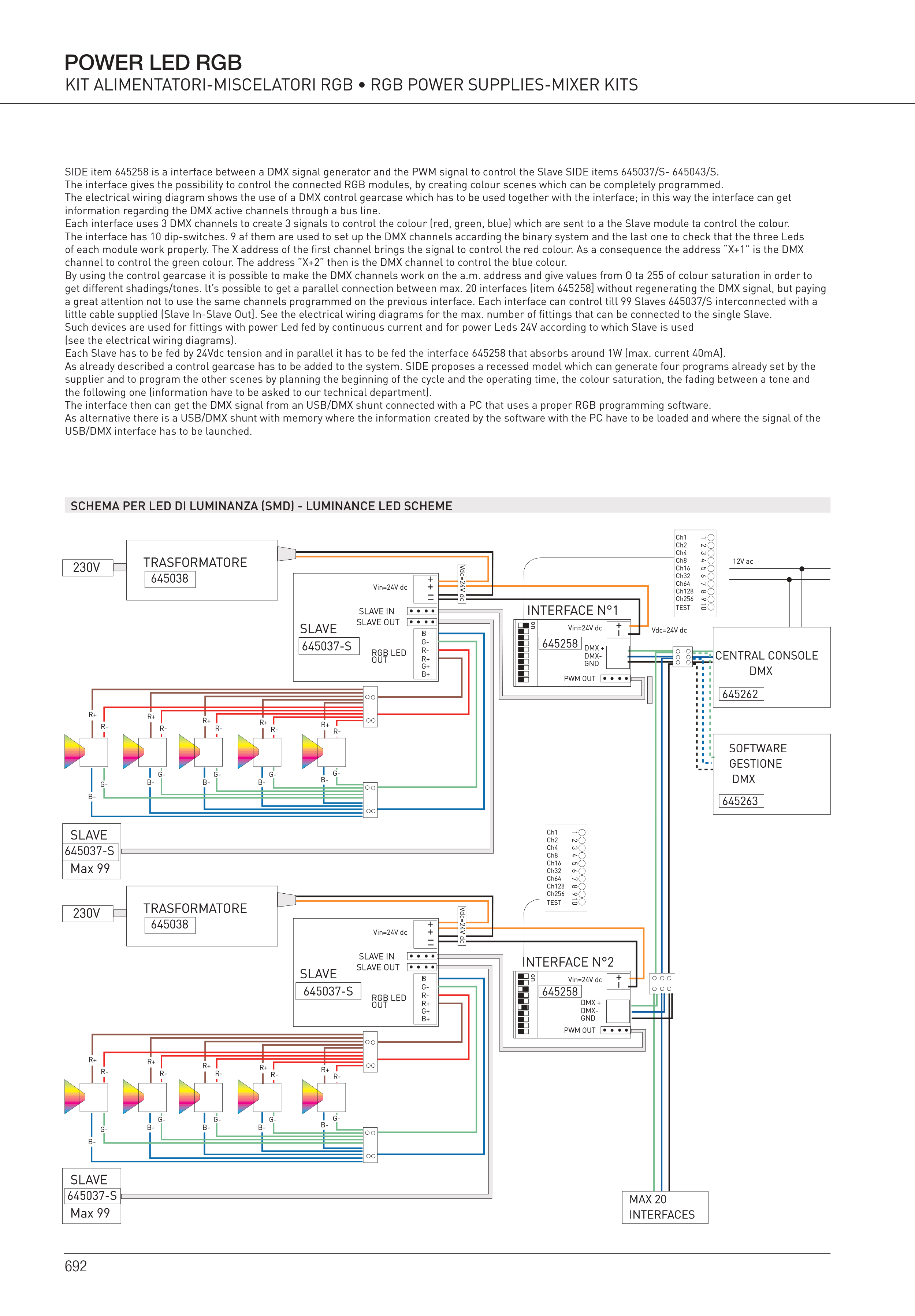 SIDE item 645258 is a interface between a DMX signal generator and the PWM signal to control the Slave SIDE items 645037/S- 645043/S.