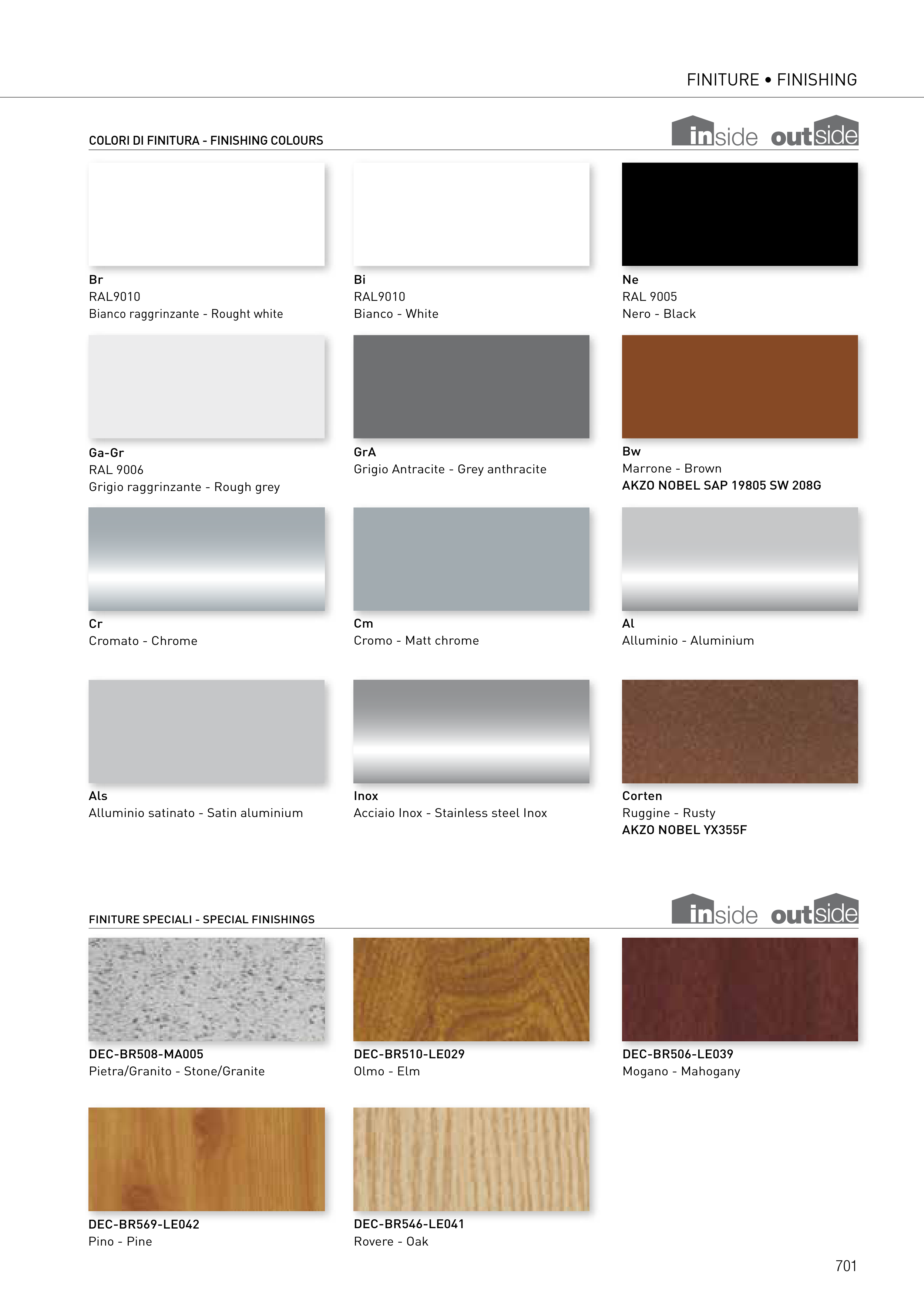 COLORI DI FINITURA - FINISHING COLOURS