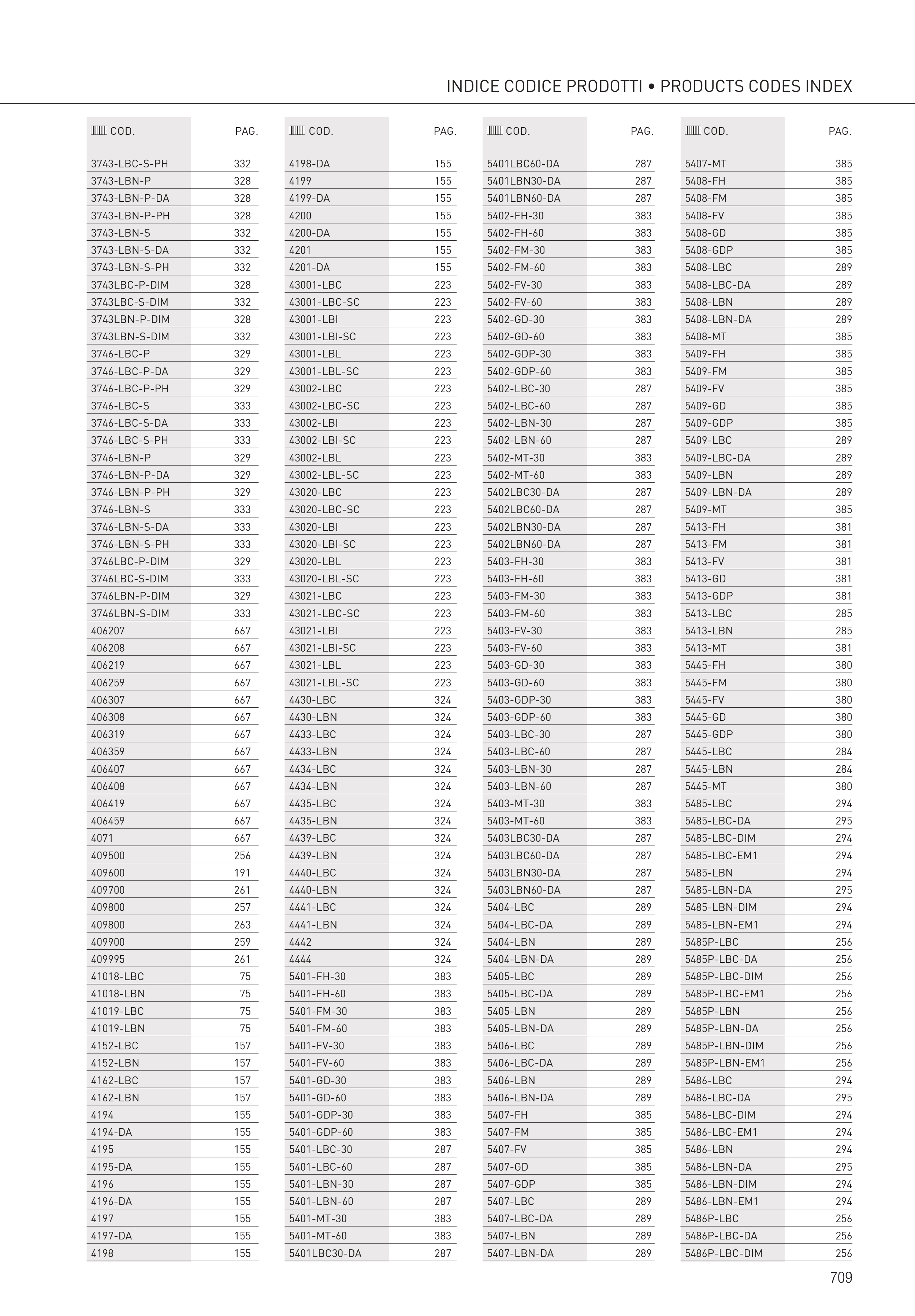 INDICE CODICE PRODOTTI • PRODUCTS CODES INDEX