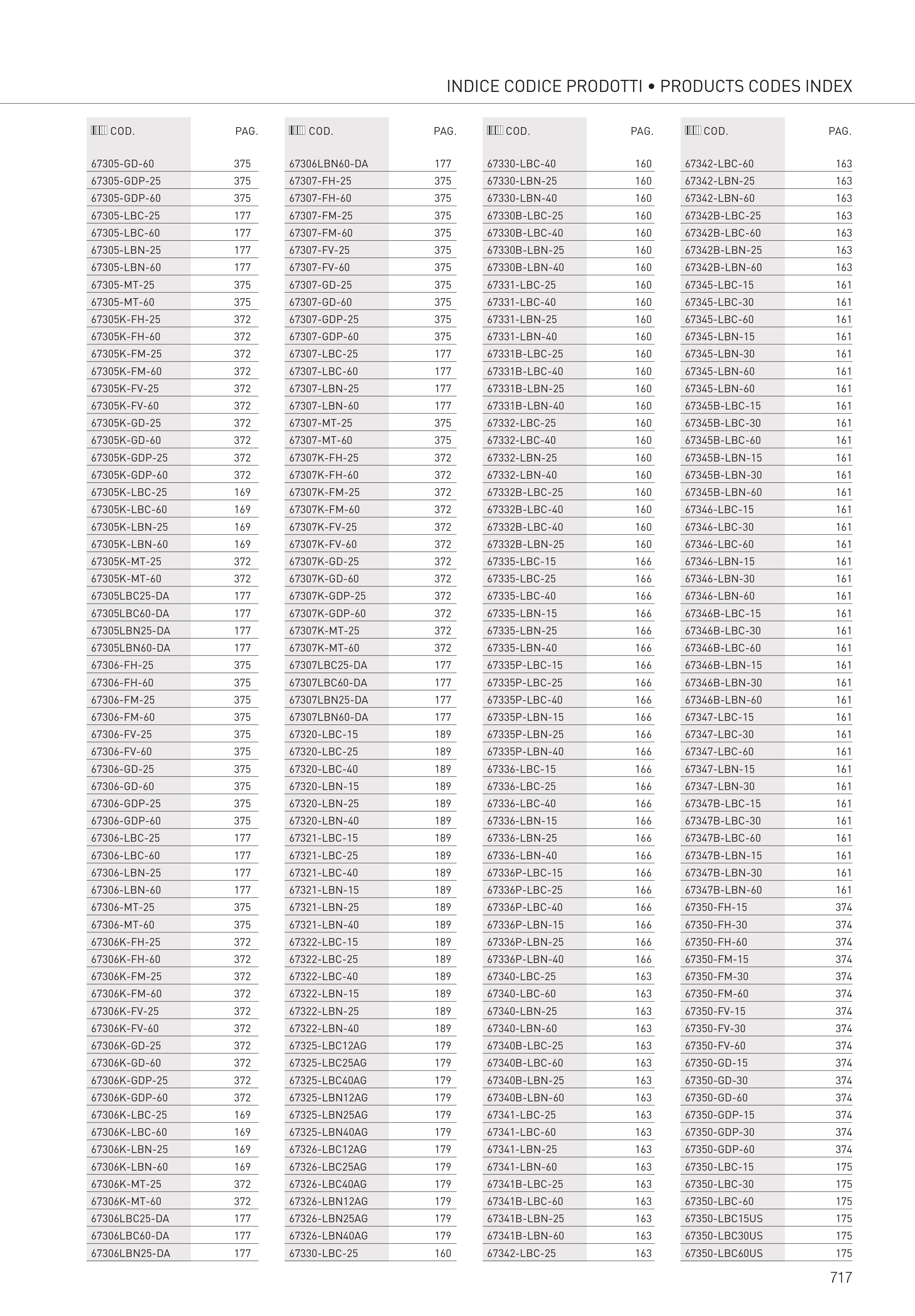 INDICE CODICE PRODOTTI • PRODUCTS CODES INDEX