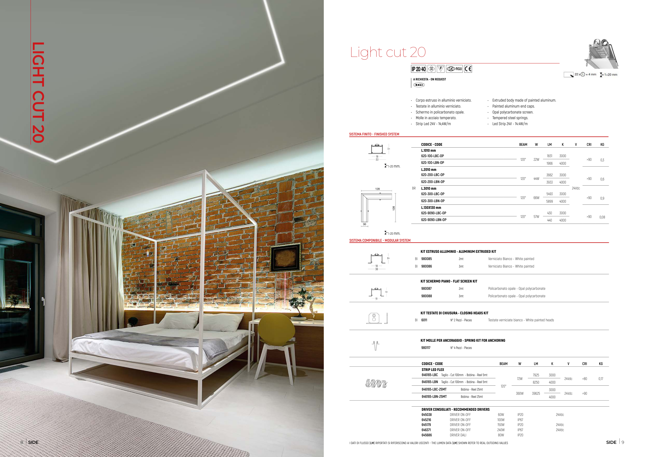 I DATI DI FLUSSO (LM) RIPORTATI SI RIFERISCONO AI VALORI USCENTI - THE LUMEN DATA (LM) SHOWN REFER TO REAL OUTGOING VALUES