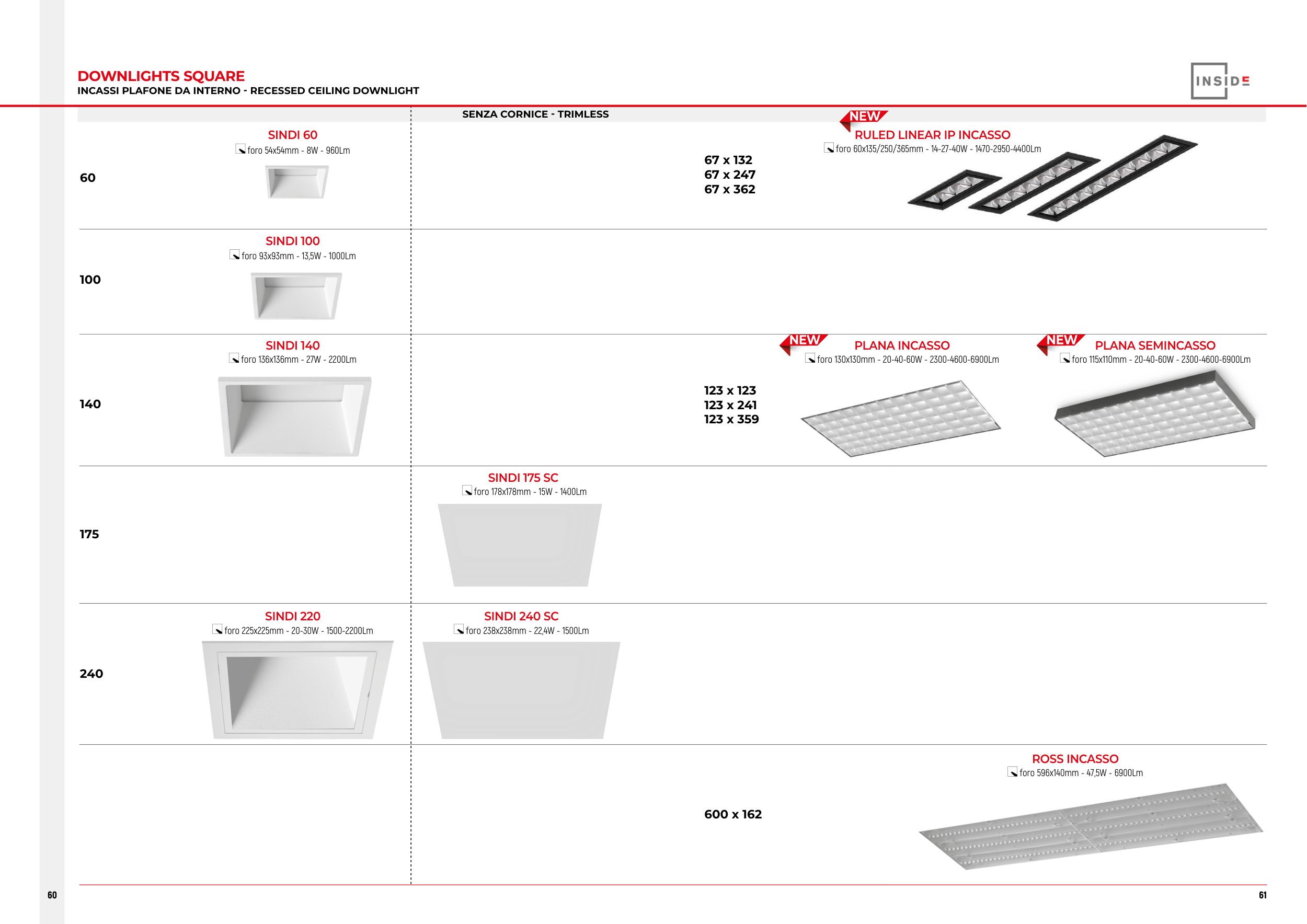 INCASSI PLAFONE DA INTERNO - RECESSED CEILING DOWNLIGHT