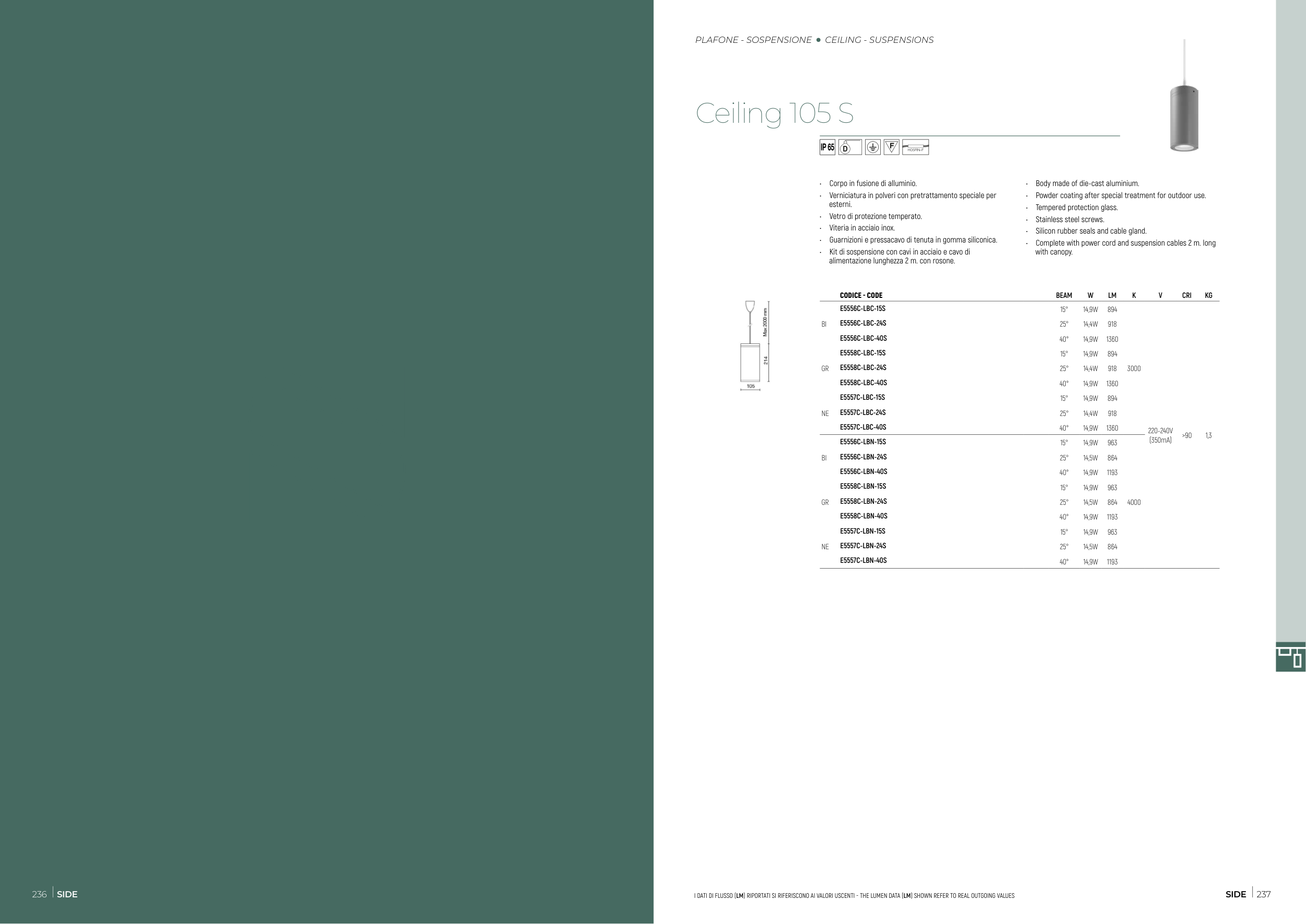 I DATI DI FLUSSO (LM) RIPORTATI SI RIFERISCONO AI VALORI USCENTI - THE LUMEN DATA (LM) SHOWN REFER TO REAL OUTGOING VALUES