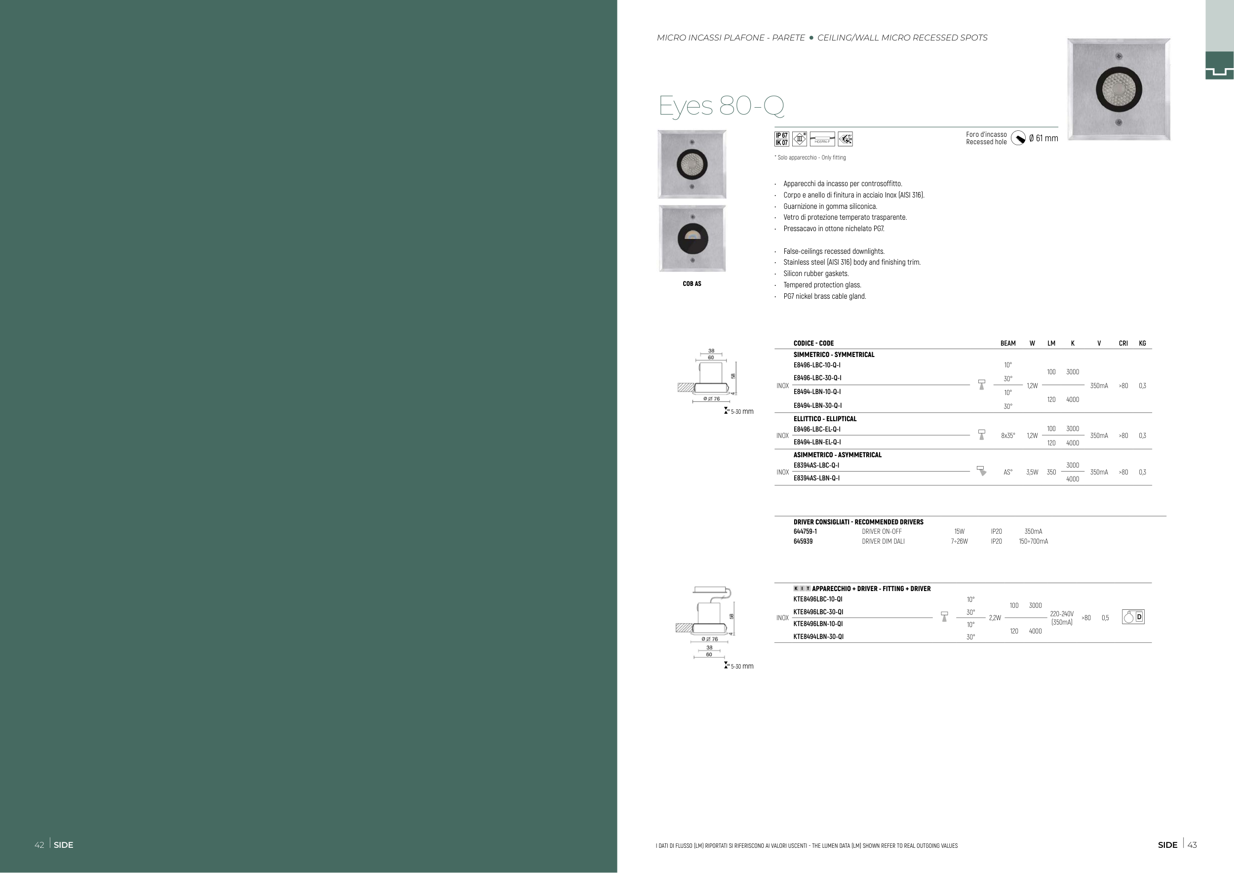 MICRO INCASSI PLAFONE - PARETE CEILING/WALL MICRO RECESSED SPOTS