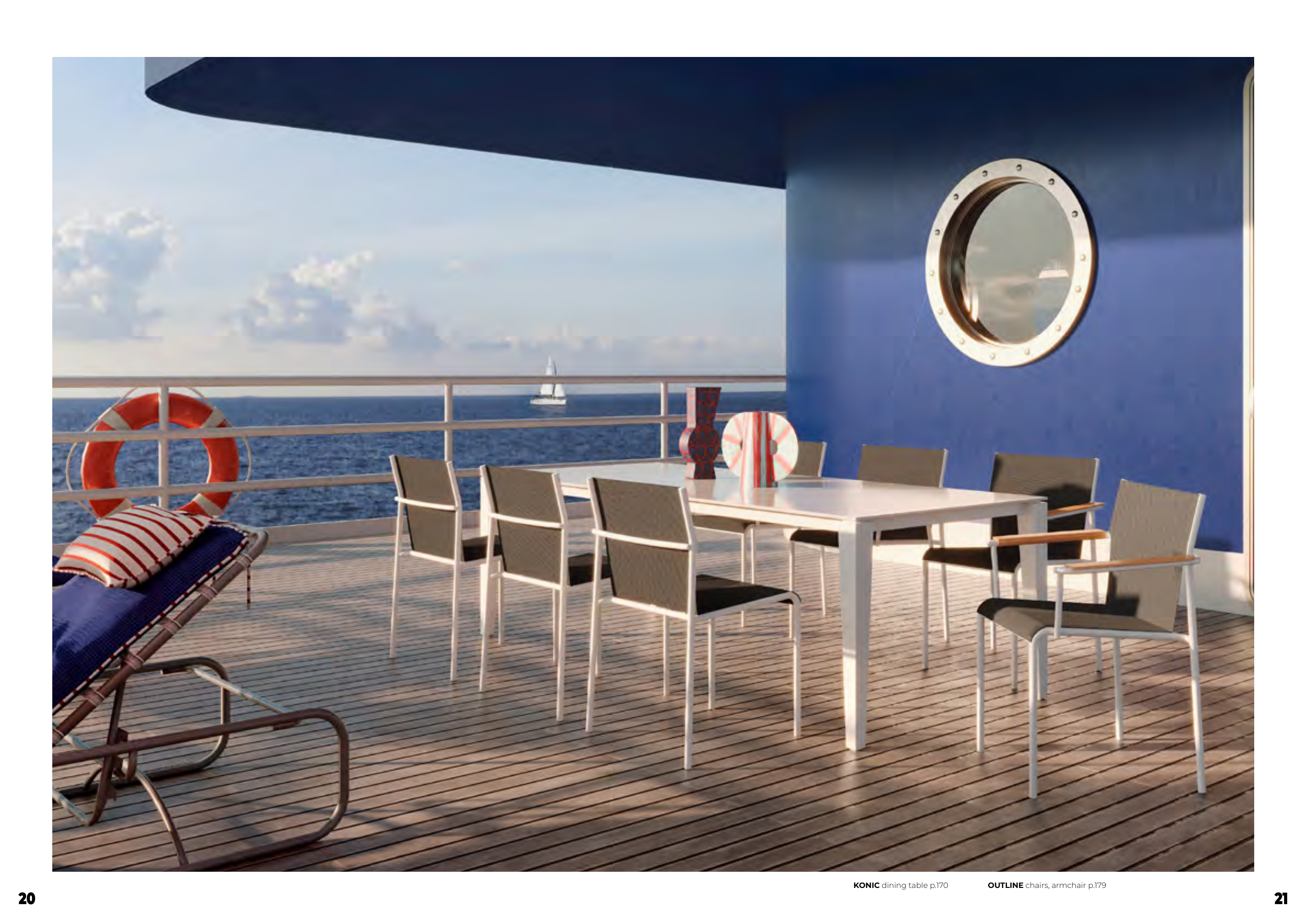 KONIC dining table p.170 OUTLINE chairs, armchair p.179