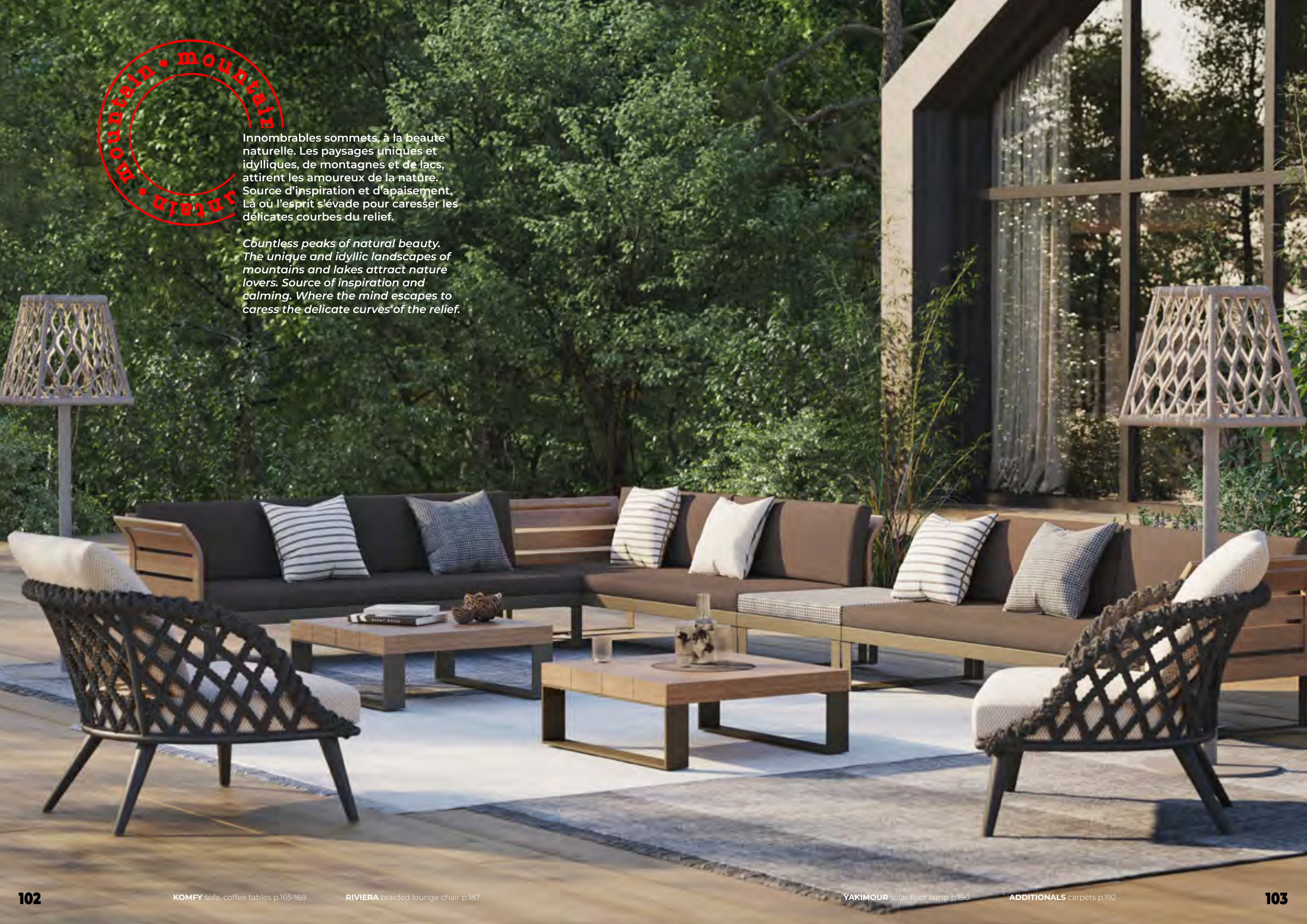 KOMFY sofa, coffee tables p.165-169 RIVIERA braided lounge chair p.187