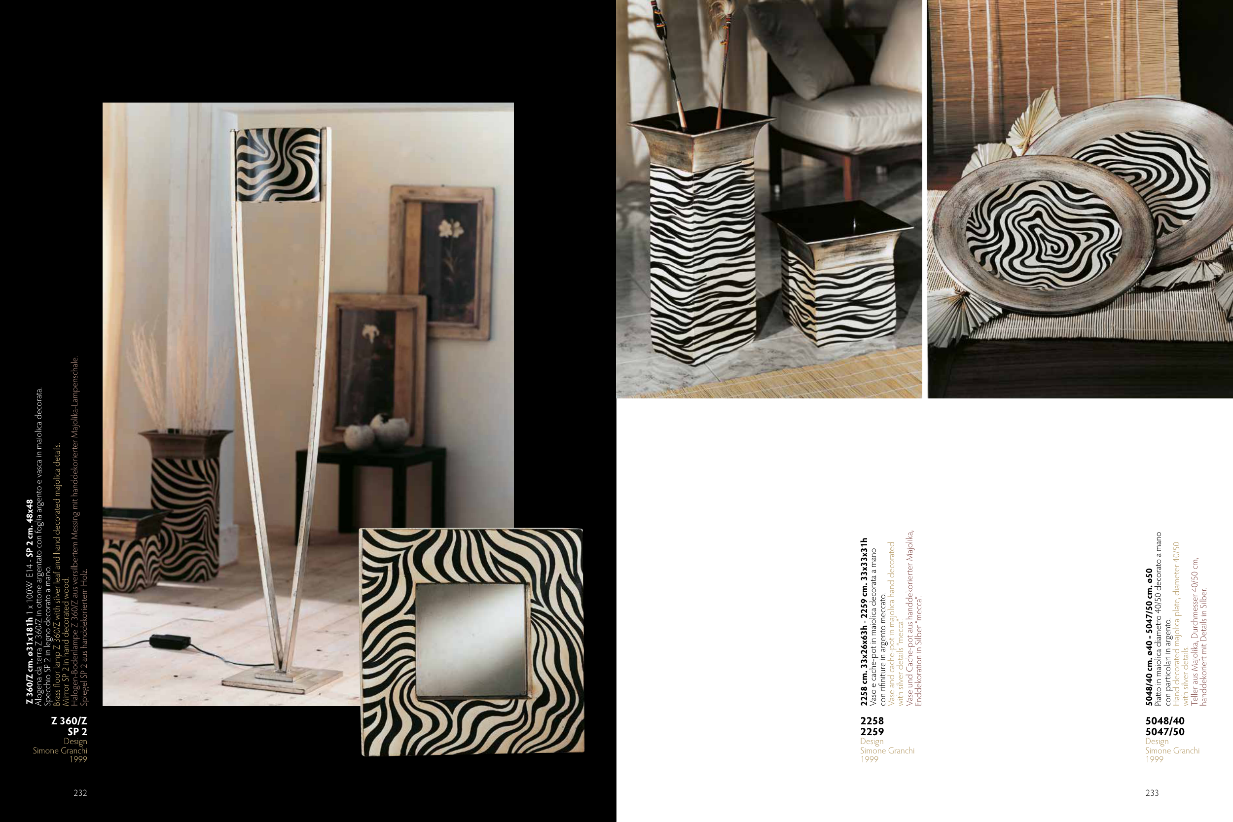 Alogena da terra Z 360/Z in ottone argentato con foglia argento e vasca in maiolica decorata.
