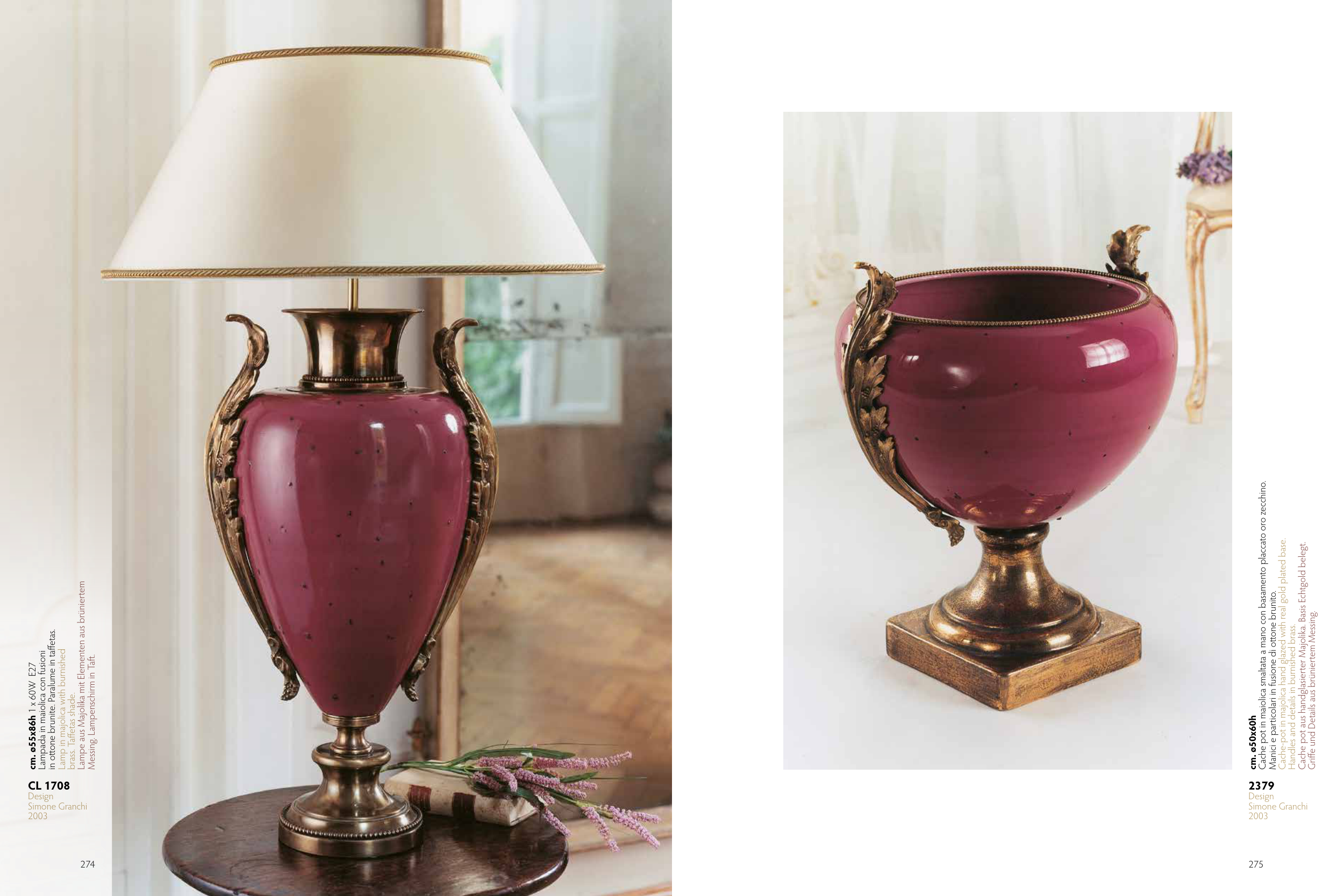 Lamp in majolica with burnished