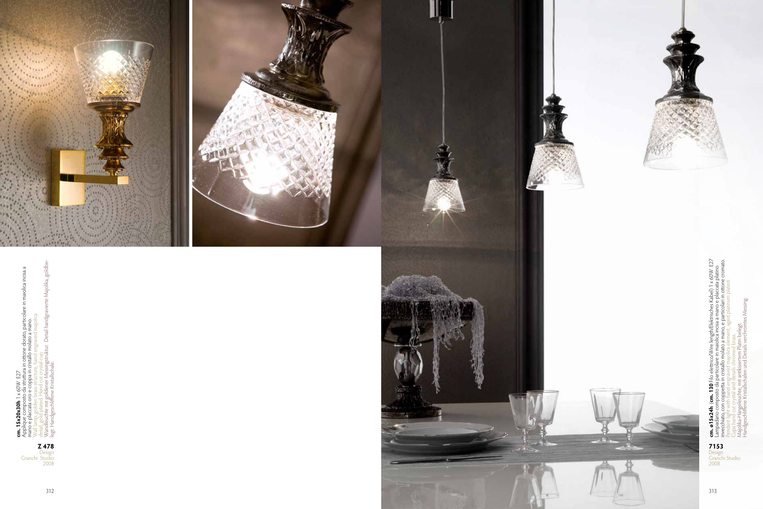 Cups hand cut crystal and details chromed brass.