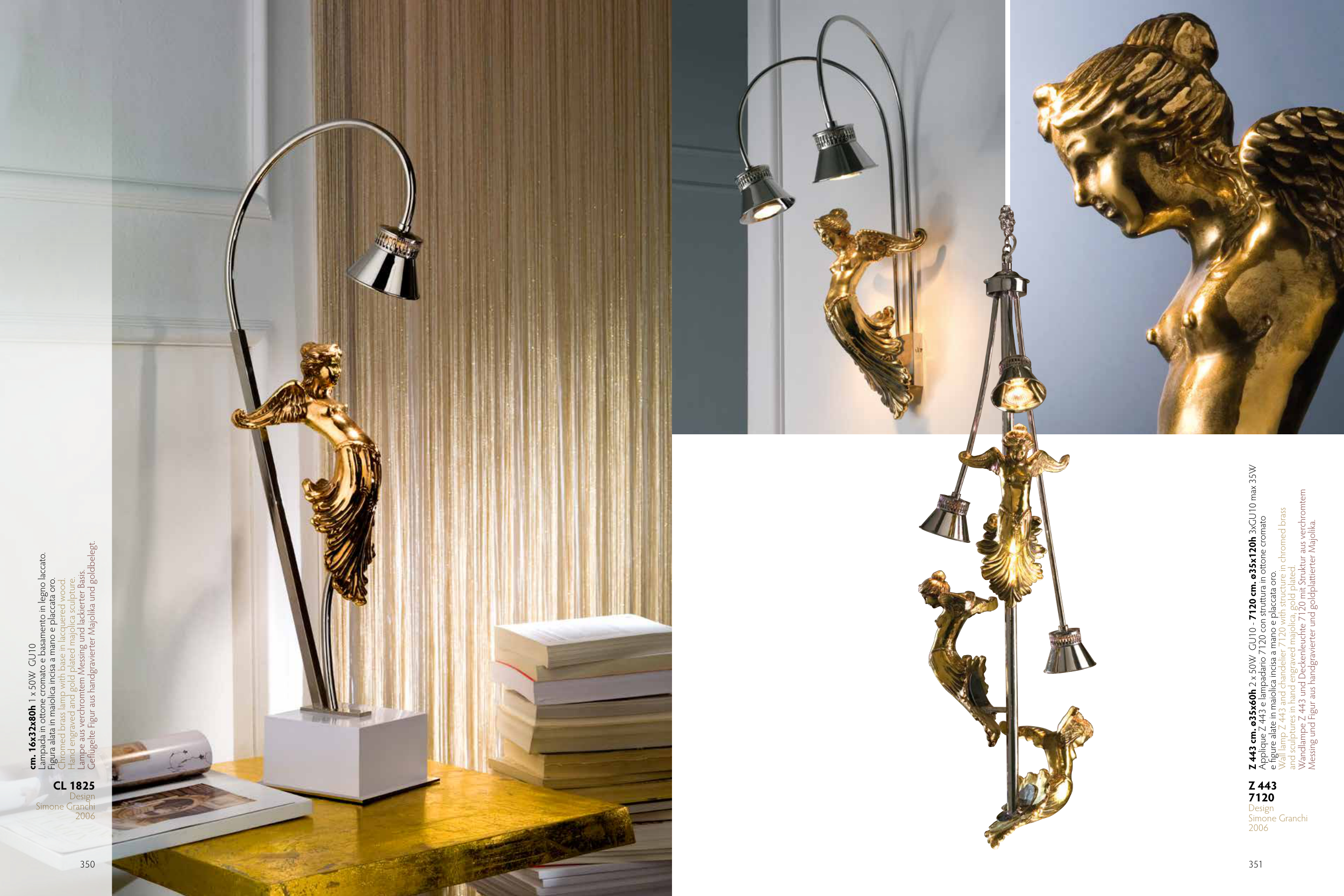 and sculptures in hand engraved majolica, gold plated.