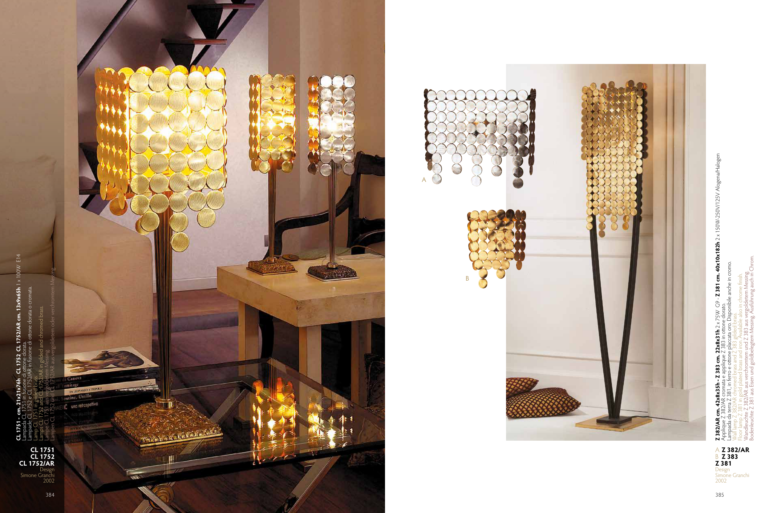 Lampen CL 1752 und CL 1752/AR aus vergoldetem oder verchromtem Messing.