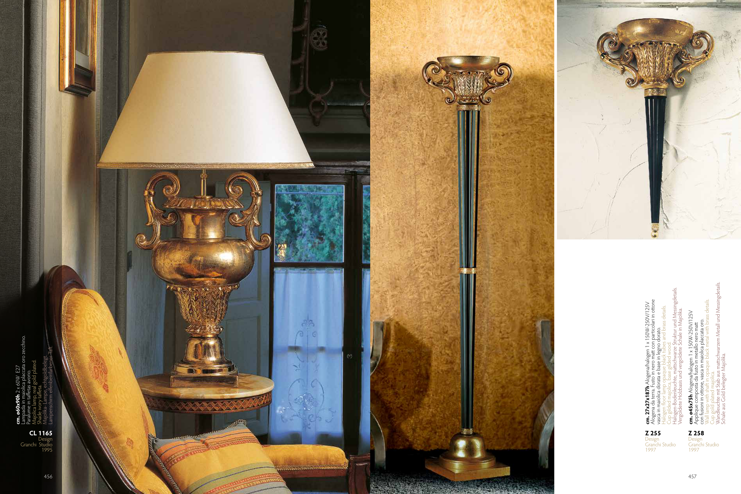 Lampada in maiolica placcata oro zecchino.