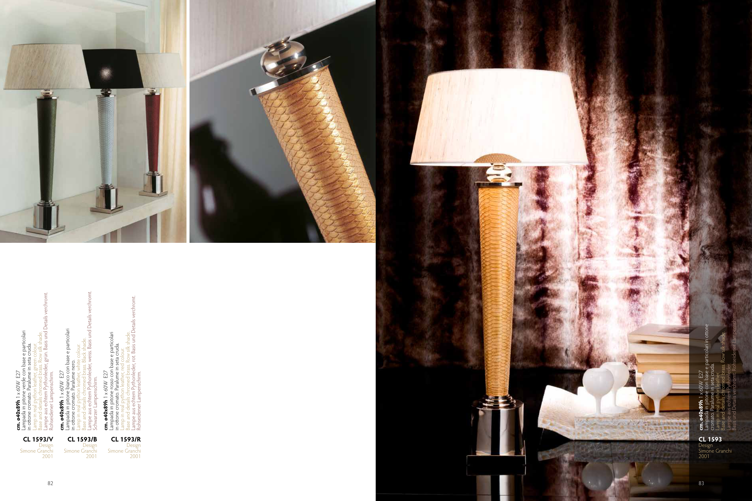 Lampe aus echtem Pythonleder, weiss. Basis und Details verchromt.