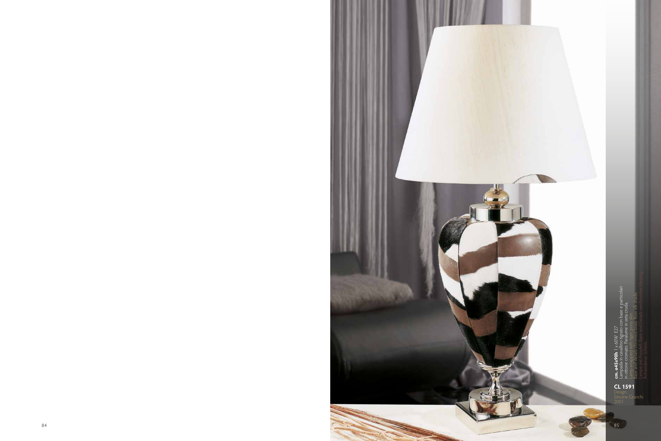 Lampada in cavallino tigrato con base e particolari