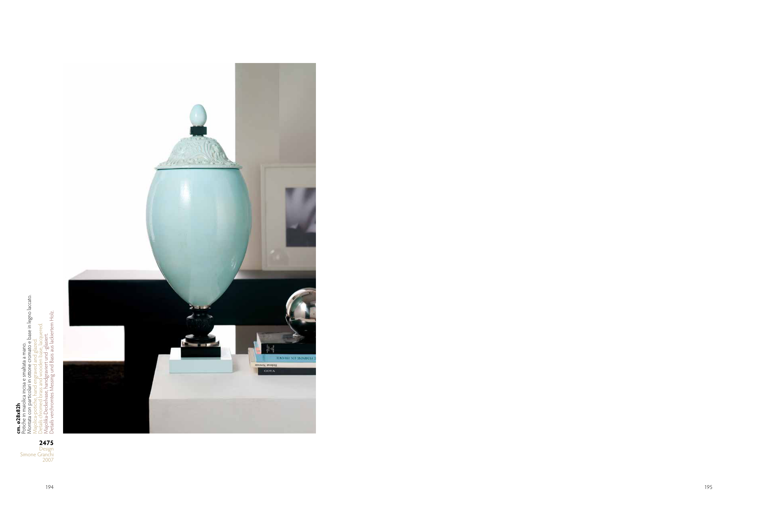 Majolica-potiche, hand engraved and glazed.