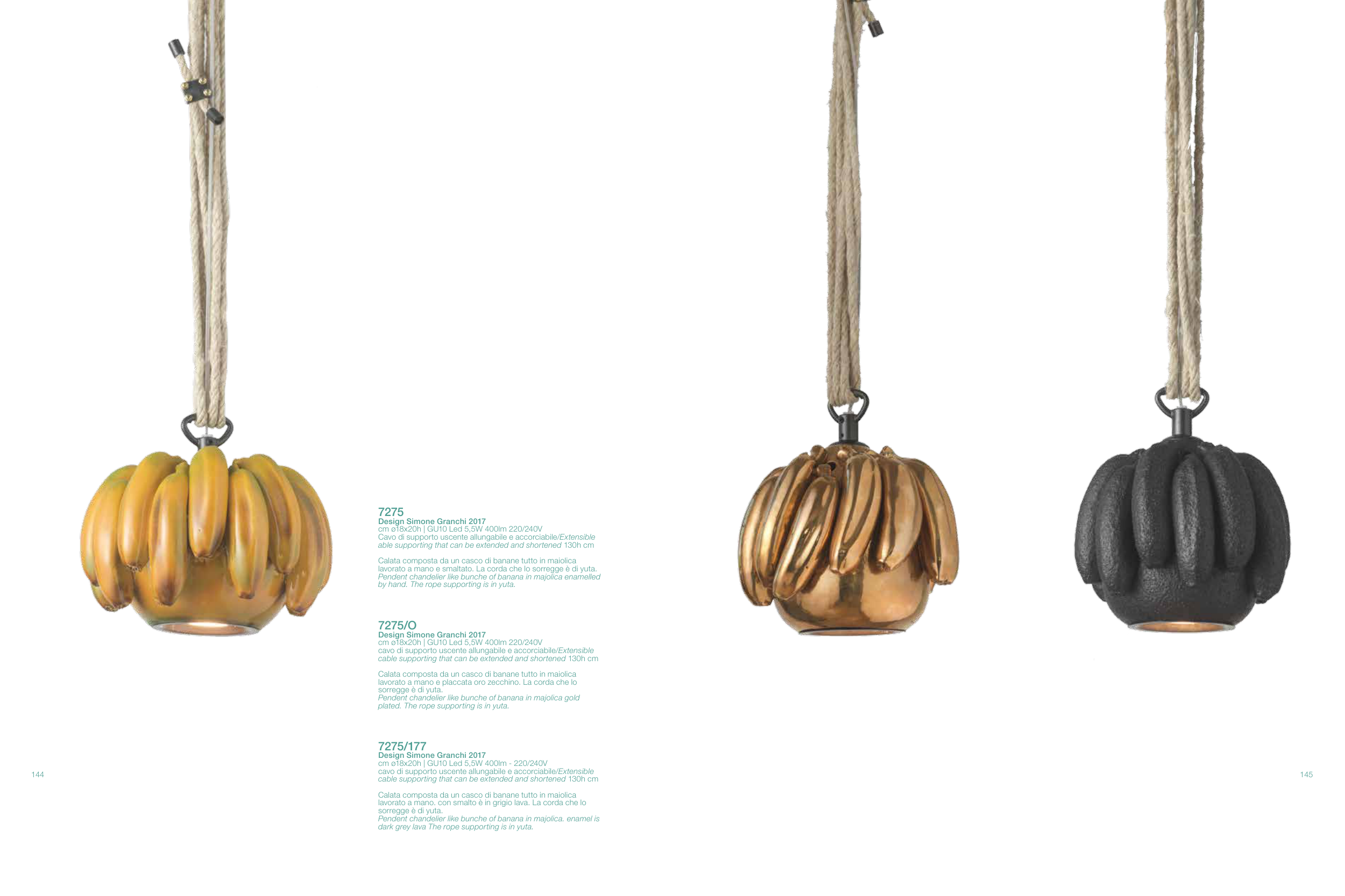 Pendent chandelier like bunche of banana in majolica. enamel is