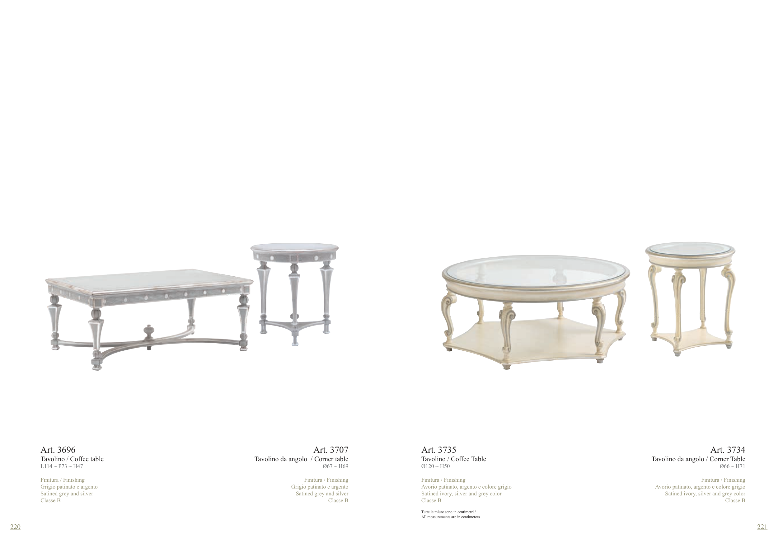 Avorio patinato, argento e colore grigio