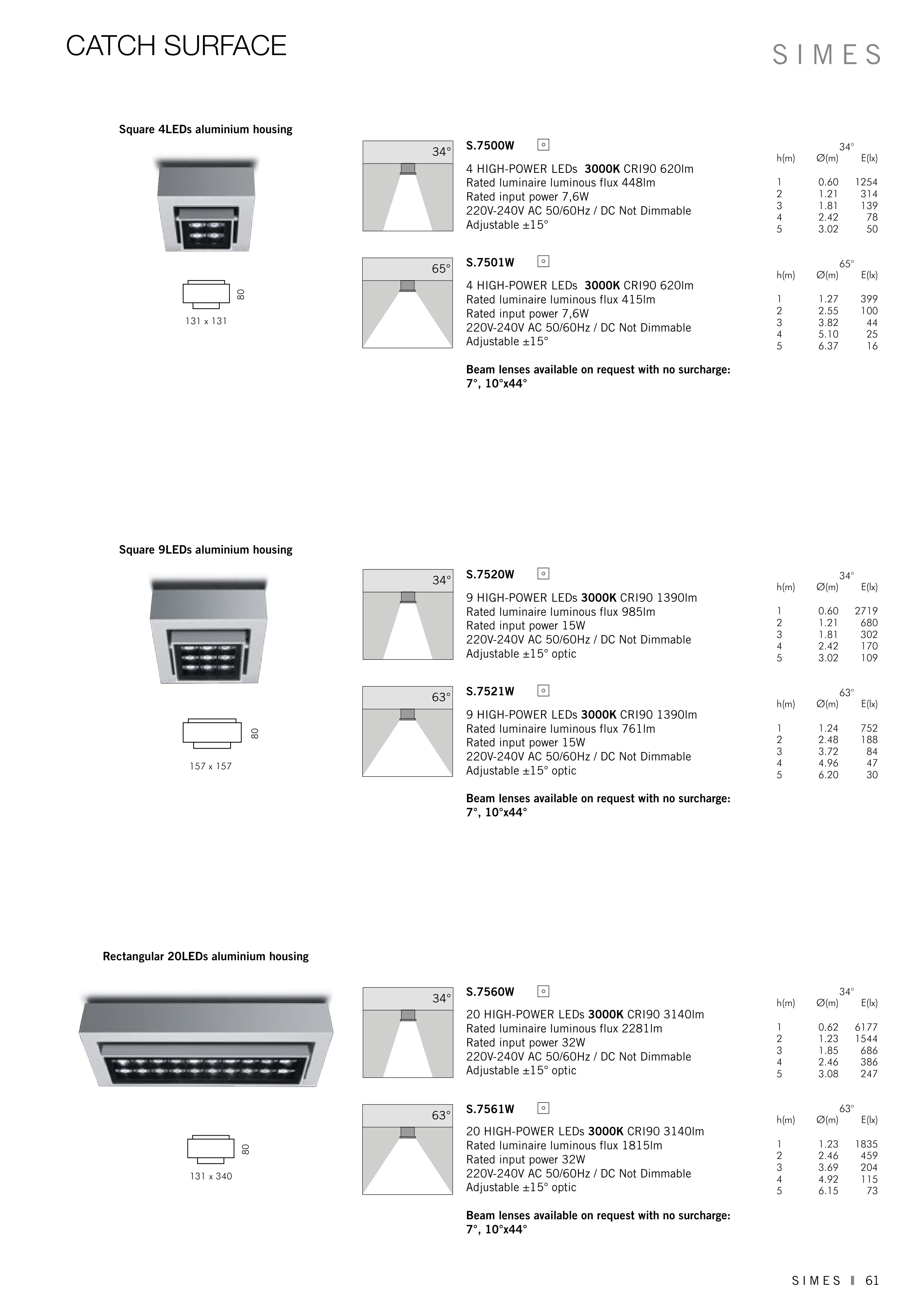 Beam lenses available on request with no surcharge: