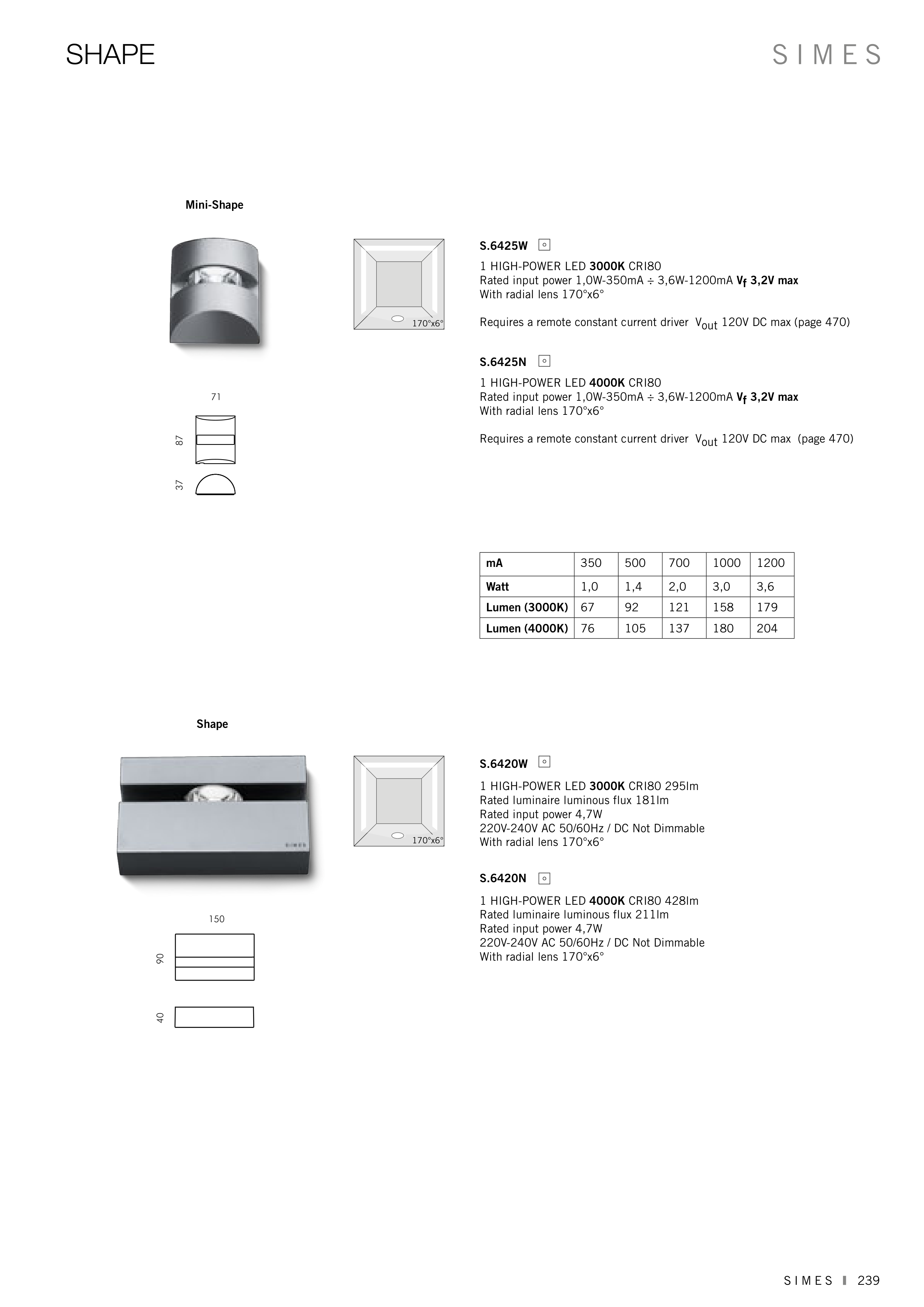 Requires a remote constant current driver Vout 120V DC max (page 470)