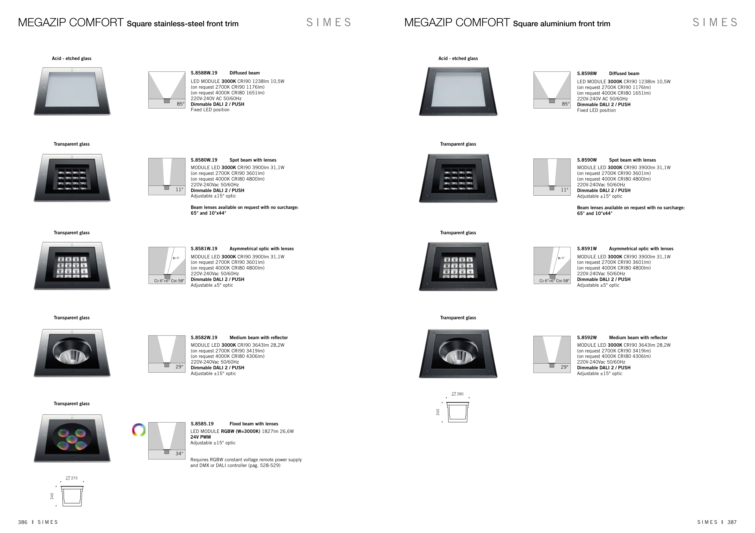 Beam lenses available on request with no surcharge: