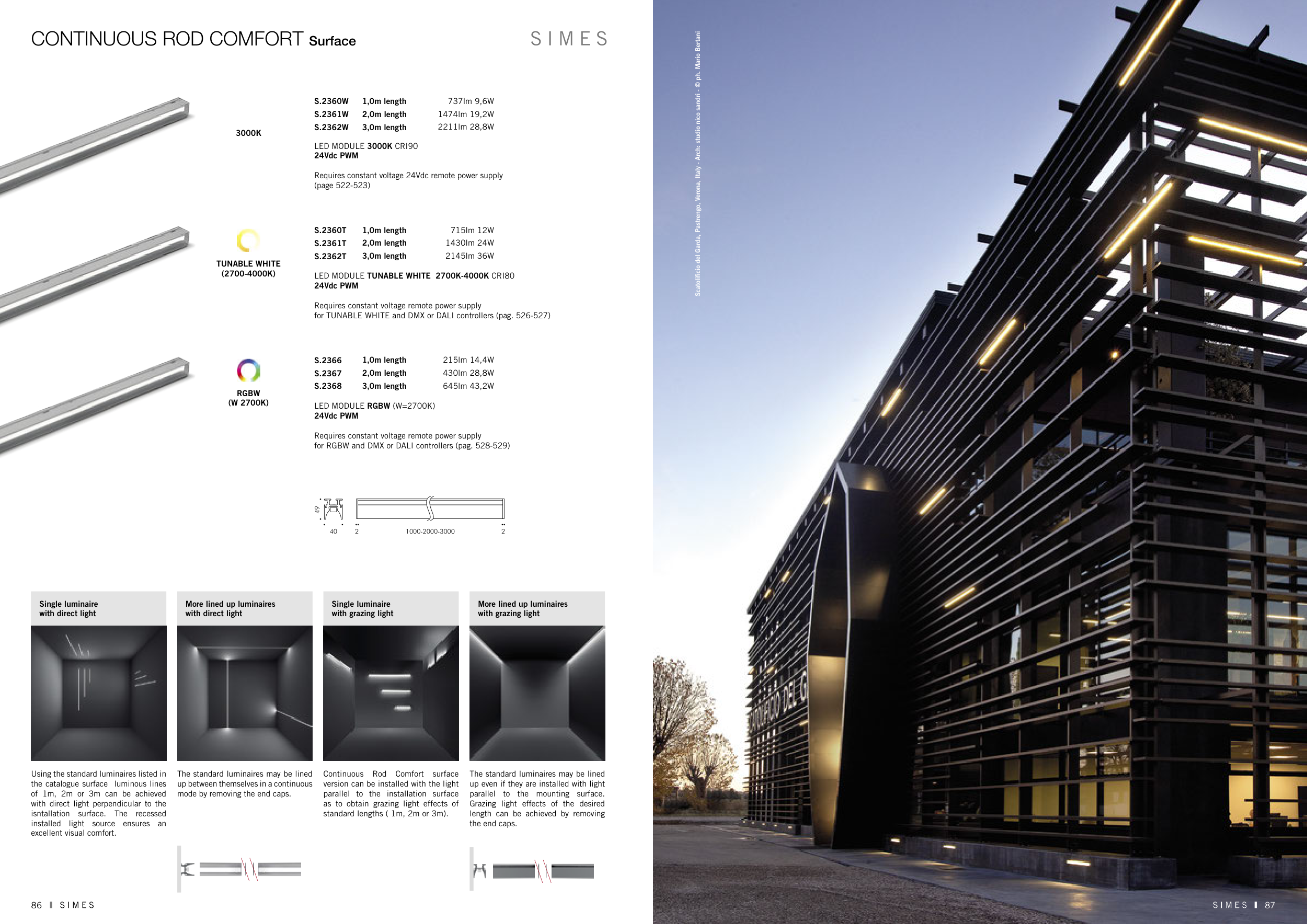 for TUNABLE WHITE and DMX or DALI controllers (pag. 526-527)