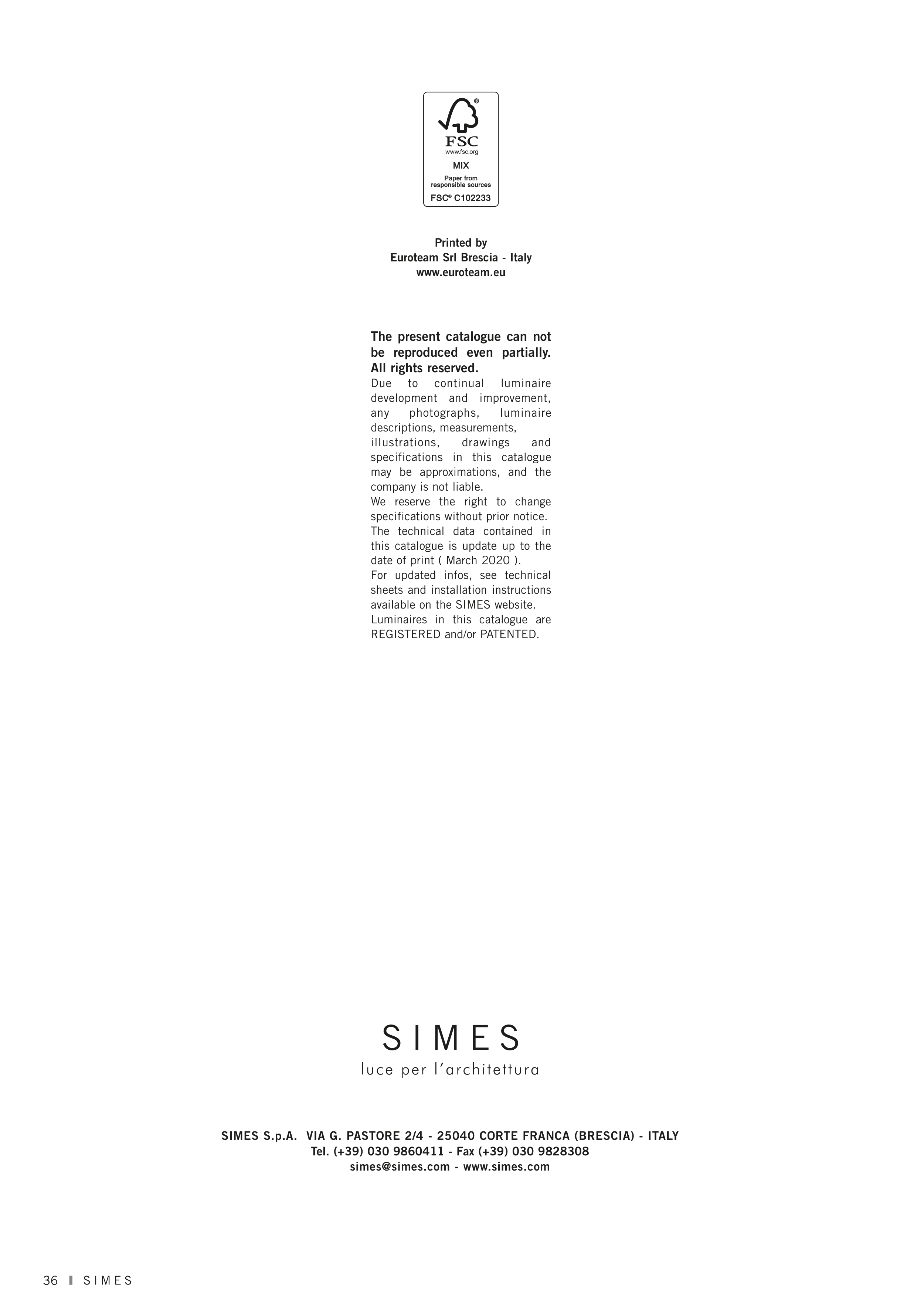 SIMES S.p.A. VIA G. PASTORE 2/4 - 25040 CORTE FRANCA (BRESCIA) - ITALY
