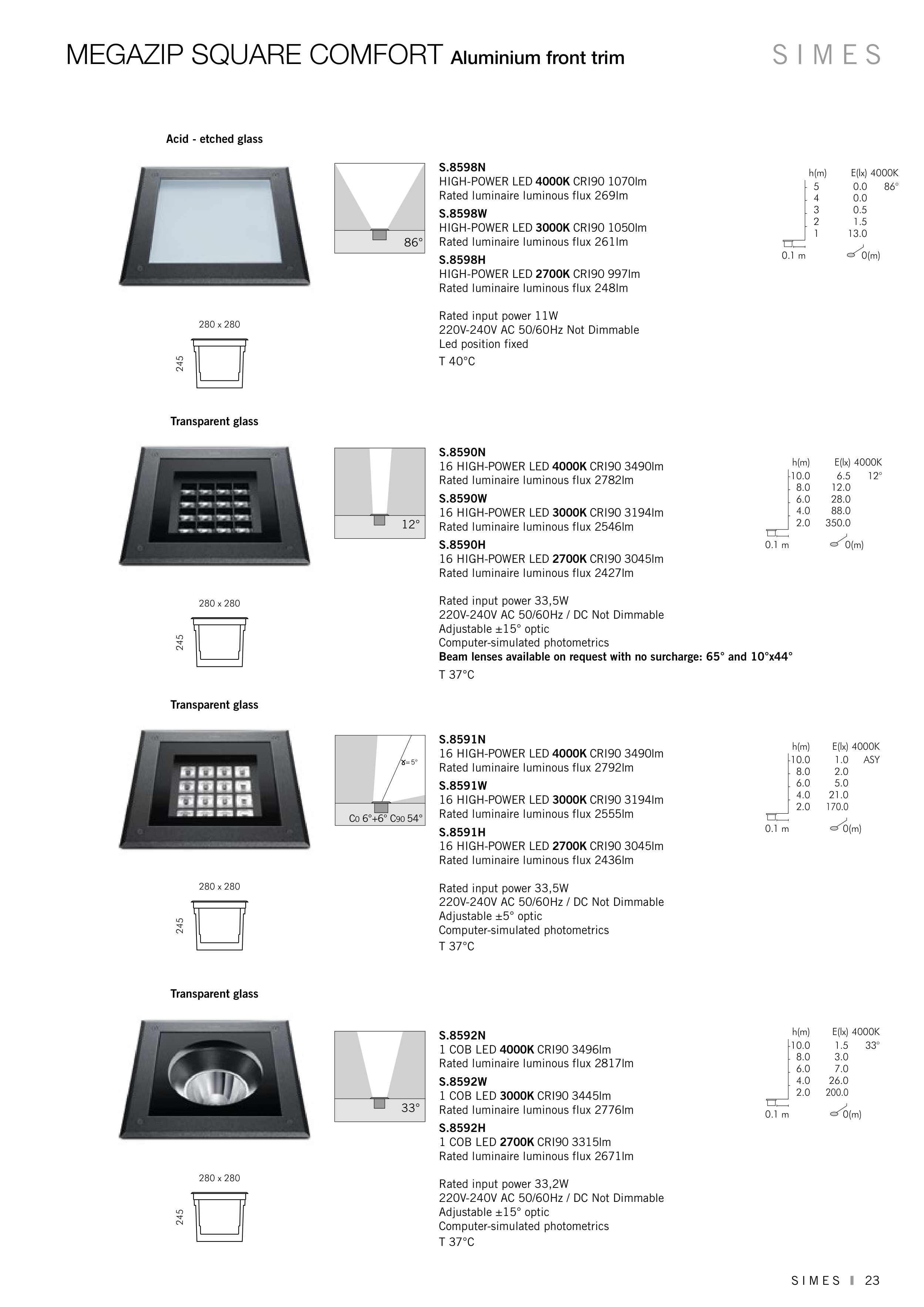 Beam lenses available on request with no surcharge: 65° and 10°x44°